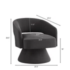 Specifications Place of Origin China Main Color Dark Gray Main Material Velvet Filler Foam Product Style American Design,Contemporary,Luxury,Mid-Century Modern,Modern Use Case Primary Living Space Dangerous Goods #dangerFlag# Dimensions & Weights Assembled Length (in.) 27.50 Assembled Width (in.) 27.50 Assembled Height (in.) 29.50 Weight (lbs) 34.00 Product Features Appearance: Graceful silhouette with sloped arms, An amazing chair for any room in your home, such as living room, bedroom or office. Construction: 360 degree swivel base features tasteful wood accent base detail, the armchair is with upholstered seat and curve backrest ,allows great flexibility in your space. Product Size: 27.5'x27.5'x29.5' Seat width :22.5' Seat depth: 22.5' Seat Height: 18” Material: Solid wood +Velvet+Foam Assembly: Tools is included for easy assembly. Description Modern Swivel Accent Chair Modern Design: The modern swivel chair features a sleek and contemporary design, incorporating clean lines and a minimalist aesthetic to complement various interior styles. Ergonomic Comfort: This chair is designed with ergonomic considerations, providing ample support for the back and arms, ensuring a comfortable seating experience for extended periods. Versatile Functionality: Whether used in a home office, living room, or study, this chair's versatile functionality makes it a stylish and practical seating solution for various settings. 360-Degree Swivel With its 360-degree swivel capability, this lounge chair provides users with the freedom to effortlessly rotate and engage with their surroundings, enhancing convenience and accessibility. The chair's design prioritizes comfort and relaxation, with a focus on providing a supportive yet comfortable seating experience, encouraging rest and leisure.