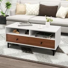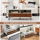 Product Description About this item 【Stylish Appearance】The white body with brown drawers in contrast colors gives this coffee table a stylish appearance. The clean lines allow it to match with most decorations. Such a modern accent table will undoubtedly bring a highlight to your room. 【Large Storage Space】This center table has a wide top to accommodate food and drinks for daily family gatherings. Besides, there are 2 open shelves and 2 drawers under. Ample storage space allows you to sort your daily necessities and keep your room in order. 【High Quality Material & Stable Structure】High-quality thickened boards and strong metal legs make our tea table with good strength and stable structure. The table top can hold up to 200 lbs, which is enough for any books, potted plants, laptop or TV. 【Easy to Assemble & Clean】A detailed instruction will be included in the package to make the assembly easier. Moreover, the polished surface of the cocktail table is smooth and waterproof, which is easy to clean with some damp cloth. 【Multifunctional Table】This table with storage can not only be used as a coffee table or side table, but also as a TV stand. Whether to put it in your bedroom, living room or study, it will be an addition that combines beauty and practicality. Specification Color White + Brown Material Engineered Wood, Steel Overall Dimension 40" x 20" x 18" / 100cm x 50cm x 45cm (L x W x H) Net Weight 61.5 lbs / 27.9kg Weight Capacity of Tabletop 200 lbs / 90kg Package Includes 1 x Coffee Table, 1 x Instruction On Aug 17, 2025 at 19:21:39 PDT, seller added the following information: