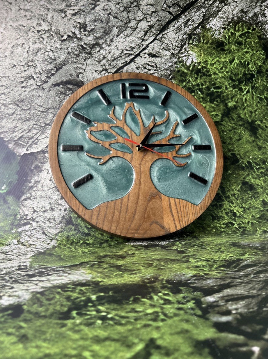Handmade Wooden Epoxy Wall Clock – Tree of Life Design Enhance your interior with this modern handmade wall clock crafted from natural ash wood and epoxy resin. The Tree of Life design represents balance, growth, and harmony, combining natural materials with a clean contemporary look. The contrast between warm wood tones and textured epoxy creates a visually striking piece that fits perfectly in modern interiors. Ideal for: • Living room • Bedroom • Office • Minimalist spaces Each clock features unique natural wood grain, making every piece one of a kind. ⸻ ⚙️ Features • Modern and clean design • Handmade craftsmanship • Natural ash wood + epoxy resin • Unique texture and depth • Silent quartz movement (якщо тихий) • Easy to hang ⸻ 🎁 Perfect Gift For • Housewarming • Birthday • Modern home decor lovers • Design enthusiasts