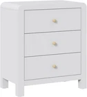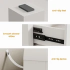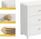 Product Description About this item Built To Last: This spacious 3-drawer dresser is built with P2-grade MDF for strength and durability, perfect for everyday use. Equipped with smooth ball-bearing slides, the drawers open and close easily. Its tough, easy-to-clean surface resists wear and keeps the dresser looking new, offering both lasting quality and practical convenience. Modern Elegance: The sleek white finish paired with elegant natural wood-tone handles perfectly embodies vintage charm while seamlessly blending with any furniture style. Rounded corners soften the overall silhouette, enhancing beauty and thoughtfully protecting your family’s safety. Its versatile design fits any decor, enhancing any room with a clean, polished look. Versatile Use: Its unique style seamlessly fits into any space—bedroom, living room, bathroom, and more—helping you stay organized and clutter-free. Use it as a nightstand, kids' room storage cabinet, wardrobe organizer, entryway console, display cabinet, or kitchen pantry. Its adaptable design complements any interior style with ease. Storage Master: Measuring 23.6" × 13.8" × 26.8", this accent dresser offers 3 roomy drawers, providing plenty of space to neatly store clothes, jewelry, and more. The wide, waterproof top adds extra functionality, perfect for displaying decorative items like lamps, photo frames, and other personal accents—combining style and practicality for your space. Safety First: Designed with a double anti-slip system to keep drawers securely in place, this chest of drawers also features non-slip pads on the feet for added stability. An anti-tip strap enhances safety by preventing accidental tipping. Assembly is simple with clear, user-friendly instructions. If you have any questions, feel free to reach out to us anytime! Previous page Next page More Choices