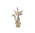 Modernist Kitty Cat Pendant Diamond Cut Sterling Silver 925 Pre-Owned Estate This petite pendant features a sleek cat design crafted from fine sterling silver (925). With its whimsical animal theme, this piece is perfect for lovers of all things cat. The silver color and simple style make it a versatile addition to any jewelry collection. Whether you're looking to add a touch of elegance to a casual outfit or to accessorize an evening look, this pendant is sure to get attention. Don't miss out on this pre-owned estate jewelry piece that is as timeless as it is adorable. 1 3/8" from the bale down. Not marked, tests as sterling