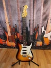 This electric guitar is a modified Fender Squier, in open box condition. with MIM loaded pickguard, perfect for any music enthusiast. (Neck 6.6k, middle 6.7k, bridge 11.8 k) Fender stratocaster waterslide logo added, Frets are in mint condition Set up with low action. Plays and sounds great. Shipping only in the 48 Continental states