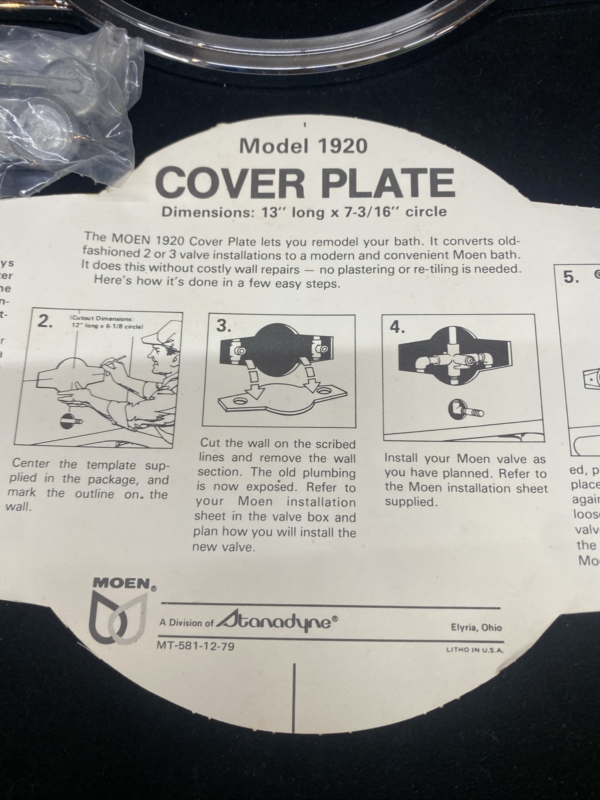 The Moen 1920 Remodeling Cover Plate in Chrome is a genuine, brand new hardware product designed for home improvement projects focused on plumbing fixtures. This cover plate is a perfect addition to any bathroom or kitchen renovation, providing a sleek and modern touch to the existing fixtures. Made by the reputable brand Moen, this cover plate ensures quality and durability in enhancing the overall look of your home plumbing system. Brand new unused.