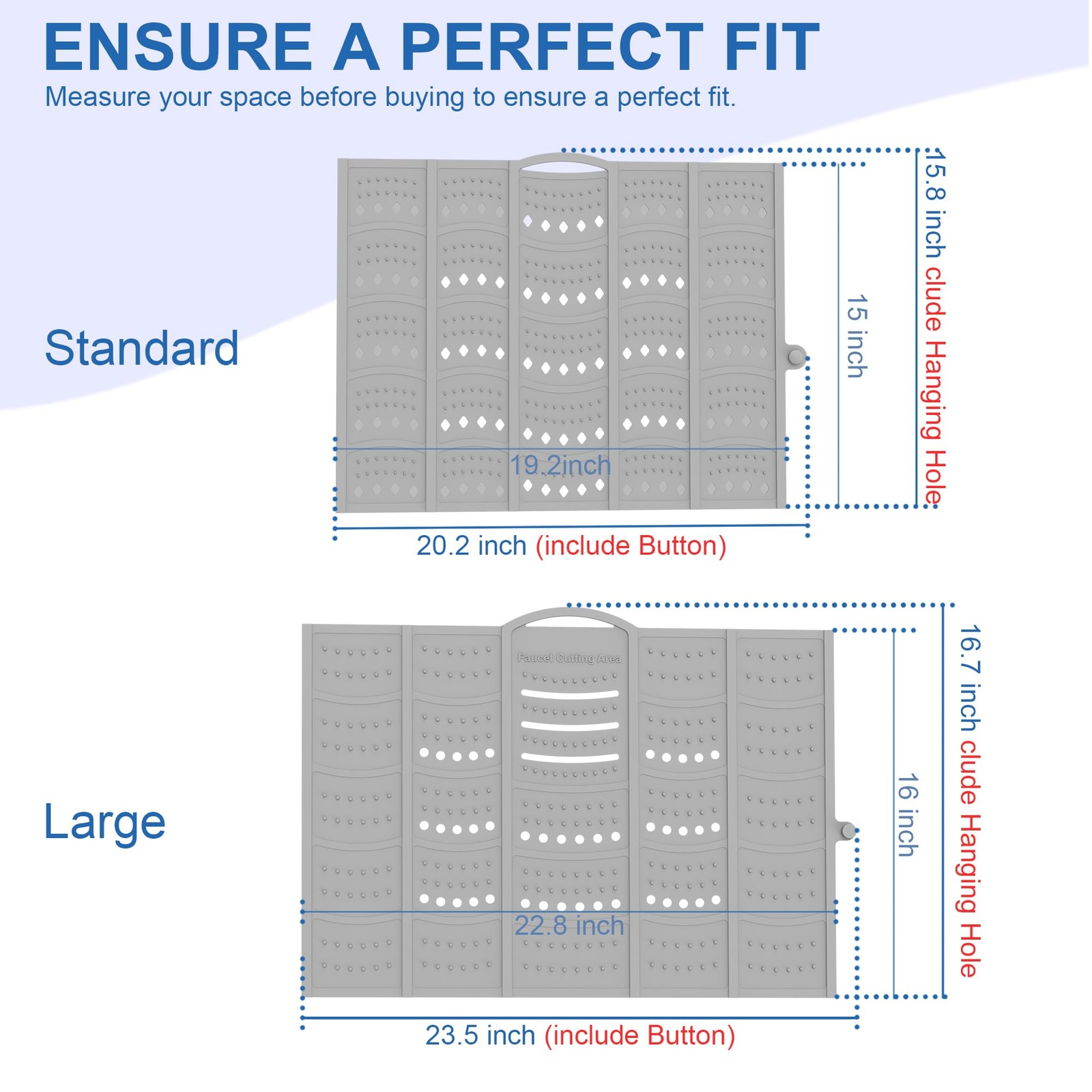 π Product Description --- Please Measure your sink for the best fit and enjoy a flawless experience! --- Do not place heavy or sharp objectson the soft silicone areas, Heavy or sharp objects must beplaced gently on 2-6 steel frames.,Durable and Sturdy: The bathroom sink cover features robust load-bearing capacity and precise structural design. The central steel frame can withstand significant weight (The load capacity of two steel frames is 7 pounds). The silicone foldable sink cover is designed for portability, ideal for small bathrooms, RVs, campers, and travel use.,Space-Saving: A must-have accessory for small bathrooms, this makeup sink cover mat expands countertop space and organizes all makeup tools and beauty products, such as eyebrow pencils and makeup brushes, keeping the sink countertop tidy. The sink cover measures 20.2inches Γ 15.8 inches (measurements include side buttons and top edge hanging holes).,Easy DIY: Foldable sink cover faucet area can be cut to allow water to flow freely from the faucet. Heat-resistant up to 450Β°F, protecting curling irons, hair dryers, straighteners, styling brushes, and more from heat damage.,Easy to Store and Clean: Sink cover for counter space can be easily rolled up and stored conveniently. You can choose to hang it for storage or carry it with you when traveling. π Specifications size 20.2 x15.8 inch color Gray model Sink Makeup Mat-1 style Classic material Silicone itemWeight 1.21 pounds partNumber Sink Makeup Mat-1 manufacturer Mofason productDimensions 2.5 x 1.9 x 15.8 inches β Fast Shipping | β Quality Guaranteed | β Customer Support 30-Day Returns β’ 100% Satisfaction