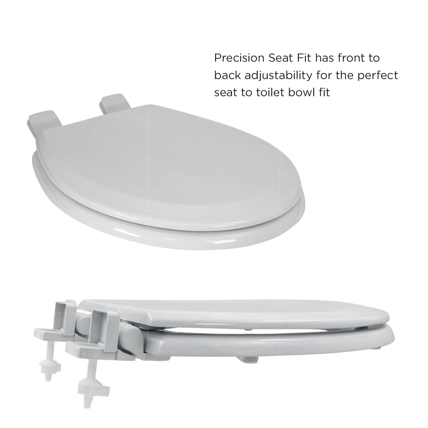 Adjustable Hinge: Seat position can be Adjusted front to back for perfect Toilet Bowl fit. Slow Close: Allows for gradual soft & Quiet close, Preventing Seat From slamming down. Easy Remove: Seat can be snapped off easily without unscrewing, enable easy cleaning and sanitizing. Multi-Coat High Gloss Enamel Paint, Corrosion Resistant Mounting Hardware Durable Molded Wood with Color-Matched Hinges