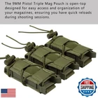 Molle Triple Tactical Magazine Holster,Universal Triple Stack Mag Pouch for 9mm/.40 Calibers 45acp Glock SandW MandP, Sig 226/229, and Springfield 1911 (Green) Features [9mm Mag Pouch Material]: Nylon,Made from high-quality Nylon materials, this magazine pouch is built to last, providing reliable protection for your magazines in various conditions. [Versatile Use]:Suitable for 9MM Pistols Magazines/Flashlight/Folding knife, Universal Triple Stack Magazine Pouch for 45acp Glock S&W M&P, Sig 226/229, and Springfield 1911 9mm/.40 Calibers.this triple mag pouch is perfect for both professional shooters and hobbyists looking to keep their magazines secure and easily accessible. [Open-Top design]: The OEBABE 9MM Pistol Triple Mag Pouch is open-top designed for easy access and organization of your magazines, ensuring you have quick reloads during shooting sessions. [Molle Style Straps]: There are three Molle straps on the back with snaps that can be attached to most regular belts and any MOLLE style gear. [Specification]: 6.7" L * 4.3" W * 1" HWeight: 0.40 lbs colors: tan, green, and black. The compact and lightweight design of this mag pouch makes it easy to carry and use during shooting activities, adding convenience to your shooting gear. Shipping Free & Fast Shipping: We offer free shipping to most of the USA with a normal delivery time of 3-7 days. However, due to the current situation, additional delivery time (up to 3 weeks) may be required for some items. Alternative Carriers: We may use alternative carriers (e.g., USPS, FedEx, UPS) to ensure your package arrives safely and on time. Due to the use of multiple carriers, we are unable to provide a tracking number automatically. Handling Time: Orders are processed and shipped within 1-2 business days of receiving cleared payment. Shipping Restrictions: Shipping to Alaska, Hawaii, Puerto Rico, Guam, and other US territories may incur shipping charges or delivery restrictions. Please contact us before ordering, or your order can be refunded/cancelled. State Restrictions: Certain items may not be shipped to California due to state regulations. Contact for Tracking Updates: If you require tracking updates or have any concerns about the delivery of your order, please feel free to contact us, and we will be happy to assist you. Return Policy 30-Day Hassle-Free Returns: If you are not completely satisfied with your purchase, you can return the item for free within 30 days of receiving it for a full refund or exchange. Easy Return Process: Contact us, and we will provide you with a prepaid return shipping label and detailed instructions. No Restocking Fee: There are no restocking fees for returns. However, the buyer is responsible for return shipping costs if the return is not due to a seller's error. Refund Processing: Refunds will be processed within 1 business day of receiving the returned item in its original condition. Payment We accept all major credit cards, PayPal, and Apple Pay for your convenience. Your payment information is secure and encrypted to ensure a safe and seamless transaction. Please complete your payment within 3 days of purchase to avoid any delays in shipping. Feedback Your feedback is extremely important to us. We strive to provide the best products and customer service possible. If you are satisfied with your purchase, please take a moment to leave us a positive review. If you have any concerns or issues with your order, please contact us before leaving negative feedback. We are committed to resolving any problems and ensuring your satisfaction. Contact Us If you have any questions or concerns, please feel free to reach out to our customer support team. You can contact us through the eBay messaging system. We are available Monday to Friday, 9:00 am to 5:00 pm EST, and we will do our best to respond to your inquiry within 24 hours. Thank you for supporting our small family business!
