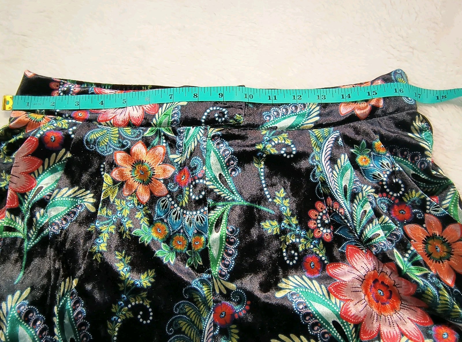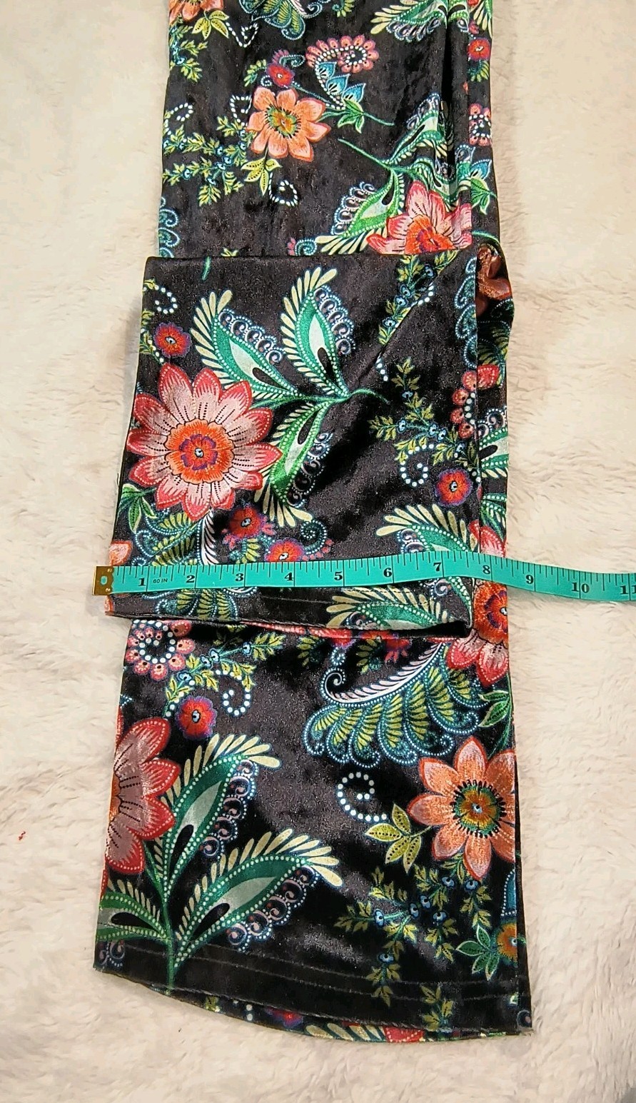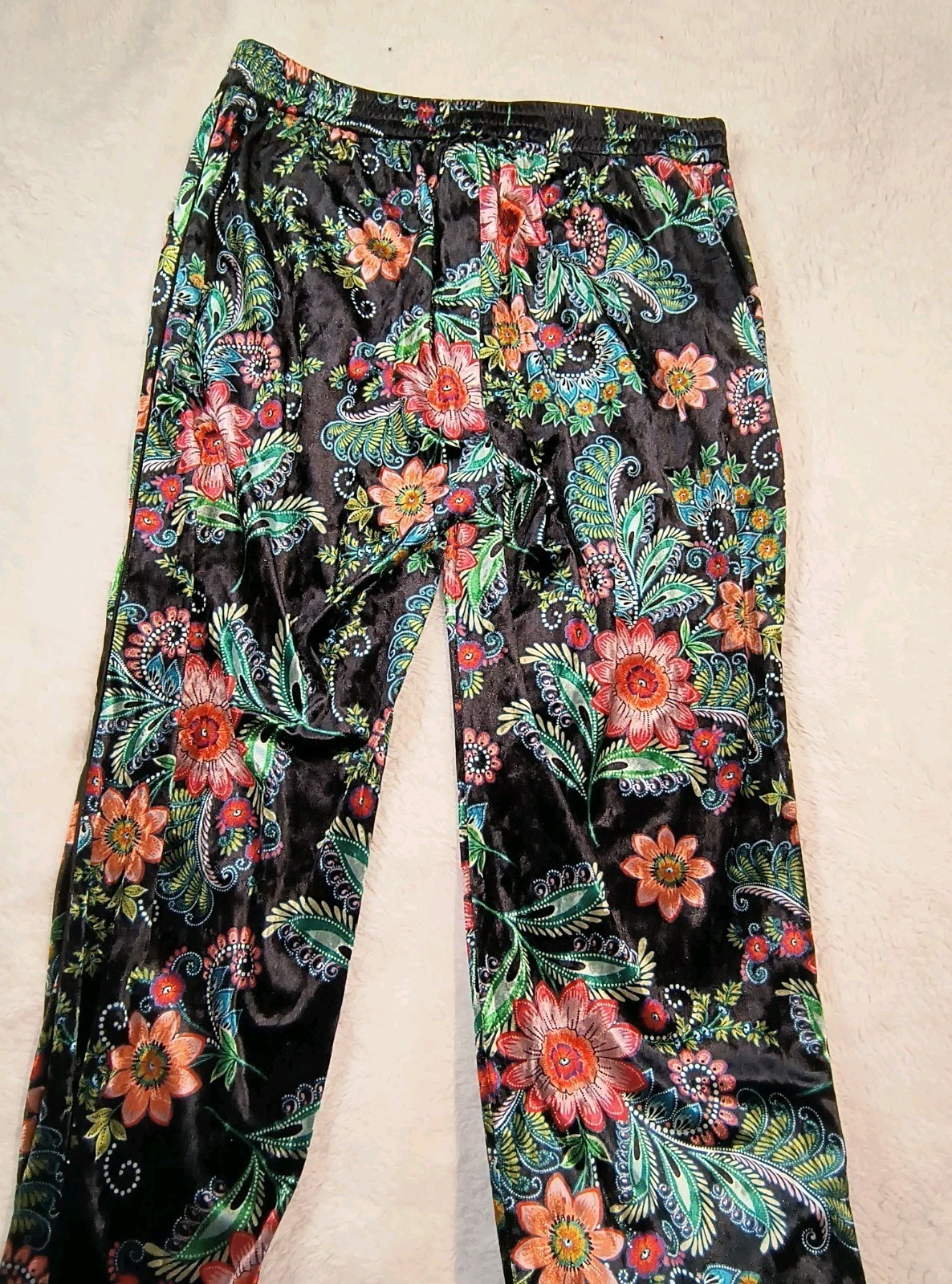 These Molly Bracken Floral Velvet Wide Leg Pants in Women's XL are the perfect addition to any boho lover's wardrobe. The black floral fabric adds a touch of elegance, while the wide-leg design and elastic waist provide comfort and style. Ideal for various occasions from casual to formal, these pants are versatile and trendy, making them a must-have for the fall fashion season. Designed for regular sizing with a 29-inch waist and 28.5-inch inseam, these pants offer a flattering fit for a range of body types.