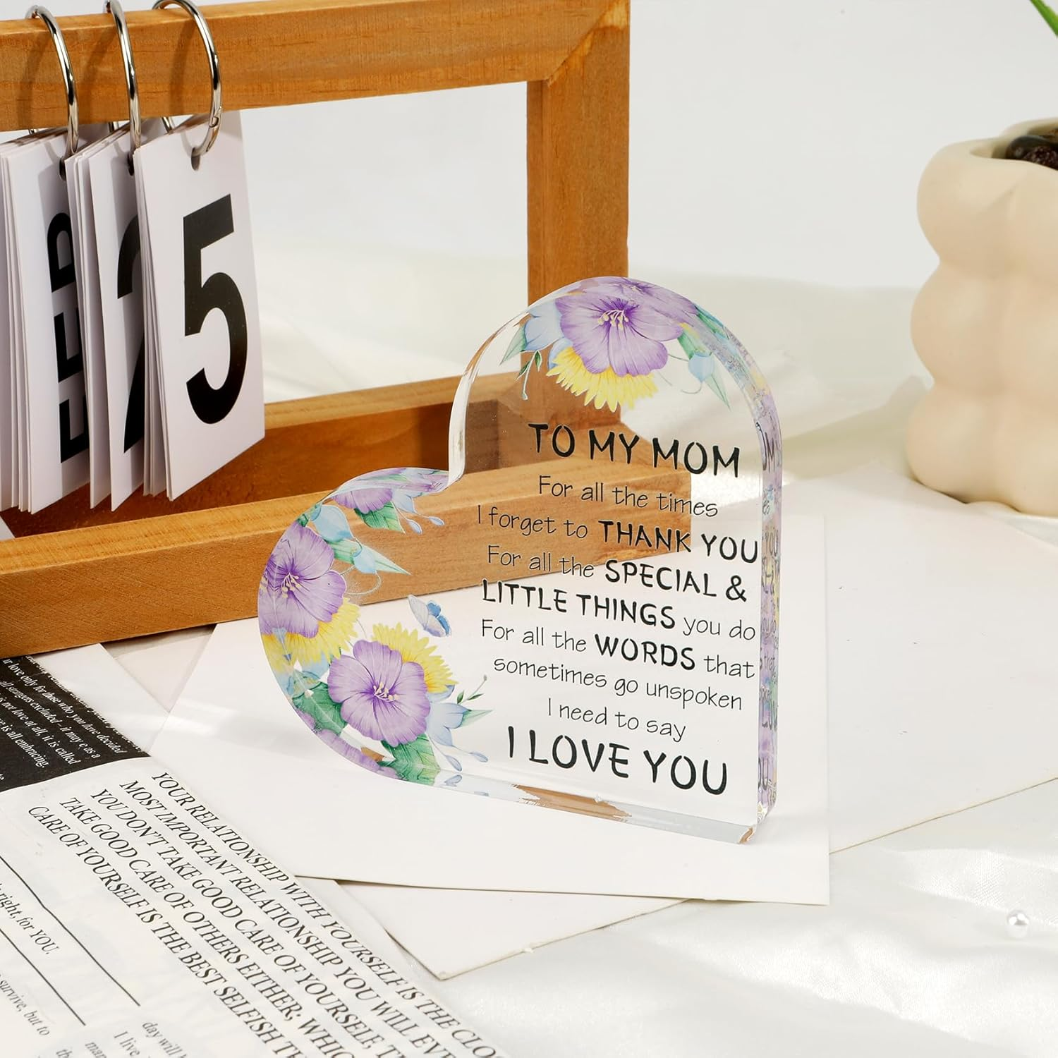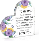 【Meaningful Gifts for Mom】The mom gifts acrylic plaque is engraved with special words for your mom, making it an ideal gift for your mom to express your love and appreciation for her with this warm and meaningful gift 【High Quality Material and Proper Size】Our mom birthday gifts is made of high quality acrylic, which is clearly printed, smooth in surface, strong and durable, not easy to break, scratch-resistant, can be used for a long time. The size is 3.9*3.9in, small and delicate, can be easily held in the hand. Perfect gifts for mom from daughter son 【Perfect Gift Choices】This mom keepsake gifts is a perfect mom gift ideas, especially for mothers day gifts for mom from daughter son, first mothers day gifts for new mom, mom birthday gifts, bonus mom mothers day gifts, step mom mothers day gifts, mom Christmas gifts, valentines day gifts for mom, New Year Thanksgiving gifts for mom who has everything, mom to be mothers day gift, best presents for mom. 【Warm Decorations】This acrylic heart shaped decorative ornament is not only a cozy gift but also a beautiful decoration. This mom presents is suitable to be placed on mom's bookshelf, desk, nightstand, windowsill, coffee table, dresser, etc. No assembly is required, adding a touch of warmth and love to any space 【Customer Services】Perfect for Mother's Day, Valentine's Day, Christmas, Halloween, Thanksgiving, birthdays, anniversaries and other ordinary days to show your love to mom. If you have any questions about gifts for mom, please feel free to contact us, we will surely solve all your problems within 24 hours Product description Gifts for All Occasions Warm Gifts for Aunt Perfect Size Clear text printing High quality and smooth edges Can be used as paperweight Acrylic Block Keepsake for Aunt