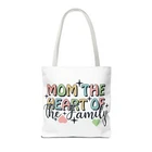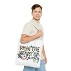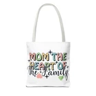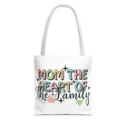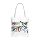 Mom Tote Bag Mom the Heart of the Family Christmas gift for Mom gift from daughter or son .: Made with 100% polyester, a medium-weight fabric (6.49 oz/yd² (200 g/m²)) that is highly durable and perfect for everyday use. .: Made in USA - Double Sided - double-stitched seams .: All tote bags come with a non-woven laminate inside, cotton handle, and are available in 3 sizes (1x large storage compartment) so that you can match your customers' needs. .: NB! Size tolerance 0.75" (1.9 cm) Thank you for supporting our small business. Follow me on Instagram to have the first look of new items @loving_gifts_by_gigi