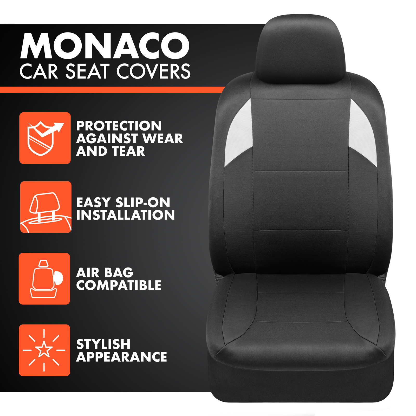Follow us on social media floor mats seat covers car covers hub caps FREE SHIPPING IN ALL 48 CONTIGOUS STATES FREE RETURNS FREE 30 DAY RETURN POLICY DAILY UPDATES WE BRING THE LATEST ITEMS SUPPORT 24/7 Contact us via ebay Monaco Black Car Seat Covers Full Set Front and Rear Bench for Auto Truck SUV DESCRIPTION Ultra-Comfort - Machine Washable Polyester Cloth with Foam Backing Universal Dimensions - Fits Most Sedans, SUVs, Vans & Trucks (Please Check the Fitment Chart) Easy Installation - Simple Slip-On Install - Takes Only a Few Mins - Make Incisions for Seat Belt as Instructed Reinforced with foam padding Perfect Present - Makes an Excellent Gift for Family and Friends; Great for Families and Pet Owners Total Protection - Guard Against Dirt, Spills & Messes Add A Layer of Comfort & Protection - Package Includes Seat Covers for Front Driver & Passenger Seats, Rear Bench Cover. Premium PolyCloth Material - Feels Like Neoprene. Made for seats w/ Detachable Headrests. Double Stitched Seams - Toughest, Durable & Long Lasting. 100% Washable - Breathable Cloth Prevents Odors and Dirt Build Up. WARRANTY INFO Free 365 Days Buyer Protection Program Our team works hard for you. Because we have such great relationships with our vendors and manufacturers, we also would like to pass on some of the benefits that we have as a retailer back to our valued customers in the form of warranty and buyer-protection program. Items in the categories of Automotive Accessories are covered by our 365 days buyer-protection program. However any perishable goods such as Airfreshner and etc. are not covered. If you need more information regarding warranty or have any question, please contact us anytime! SHIPPING INFO TERMS & CONDITIONS RETURNS INFO Coast to Coast Shipping From CA and NJ Warehouses We Ship from our two major warehouses in California and New Jersey Since we have multiple warehouse unlike others, we can ship the items faster! Any orders destined for HI, PR, AK and non-contiguous US states will incur small extra cost. 1 Day Business Day Processing Time Guarantee All orders are processed within 1 business day. Any express, changes, or cancellations must be received before 8AM PST. However we cannot guarantee changes after the mentioned cutoff time. Each orders will be shipped from our closest distribution center. All changes and cancellations must be received before 8AM PST. We are not responsible for shipping fee if buyer decided to ship the item using their own carrier. 100% FREE RETURNS WITHIN 30 DAYS* To ensure highest customer satisfaction, we provide 100% free return service! If the product different from what we have described? Return it! If the size is or fitment guide is wrong? Return it! In case you are not satisfied or have any kind of question, please call or email us and let us help you. *For all International order buyers are responsible for returning the package TIPS TO ENSURE THAT YOU ITEM and SHIPPING IS CORRECT Please always verify the address during checkout When paying with PAYPAL, please ensure that the shipping address on paypal is the desired address. Please ensure that the item matches your desired fitment EASY 3-STEPS RETURN PROCEDURE Fill out Return Materials Authorization form (We will send it to you) Attach the original invoice Return the item with RMA and original invoice CAUTION: We cannot re-route shipments with INCORRECT Address. Buyer is responsible to re-route or obtain package. We are not responsible for wrong ordering color, size, incorrect or invalid address, phone # or email NOTE: If you are reporting loss package, please contact your respective local USPS or UPS office. If you have any other questions or concerns, please Send us eBay message WARNING: This product contains chemicals known to the State of California to cause cancer and birth defects or other reproductive harm Return is allowed except for the following reasons: Used or damaged goods (due to use) cannot be returned Wrong address Incorrect or invalid quantity entered Invalid address or unmatching information The following items must be included when returning: Package or item must be in original condition and must be used. Must be within contiguous 48 US States Must provide a valid reason for return Your shipping name must be the same or a verified buyer Valid contact information such as phone, address, name, payment method Must be submitted within 30 days of the purchase of the item A valid RMA# must be accompanied with every return Exclusive Automotive Accessories Your One-Stop Shop for the Best in Auto Accessories. Seat Covers, Floor Mats for Cars, Trucks, Vans & SUVs available in hundreds of varieties of patterns, styles and materials.