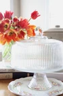 The grand but simple beauty of the Monaco cake plate adds extra grace and easy display to cakes, pies, and pastries. Flip over both pieces to reconfigure, and the stand transforms into a lovely punch bowl. The Monaco styling includes wide-wale interior ribbing on stand and lid and a generous spherical finial. The cake base is textured beneath to facilitate carrying, and the piece is stable in either of its shapes. Assembled as a cake plate, it measures 11 inches in diameter and stands 10-1/2 inches high. The dome rests 4-1/2 inches above the plate at the center. Both pieces are safe in the dishwasher. --Emily Bedard Product Description Proudly display cakes, pies and pastries. The plate features wide ribbing and a textured base for easy carrying. manufactures and markets a vast array of quality products for the home. is best known for their high quality glass tabletop and bakeware products manufactured in the USA since 1905. Glass cake stand and ribbed glass dome made in the USA Clear glass Dishwasher safe Can be flipped over and used as punch bowl