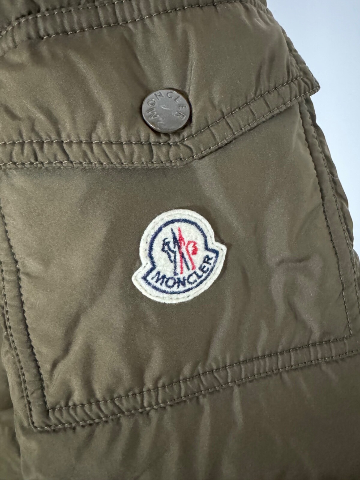 Moncler Chevalier jacket Size 3 in olive green Has some fraying at the collar (pics 6 & 7).