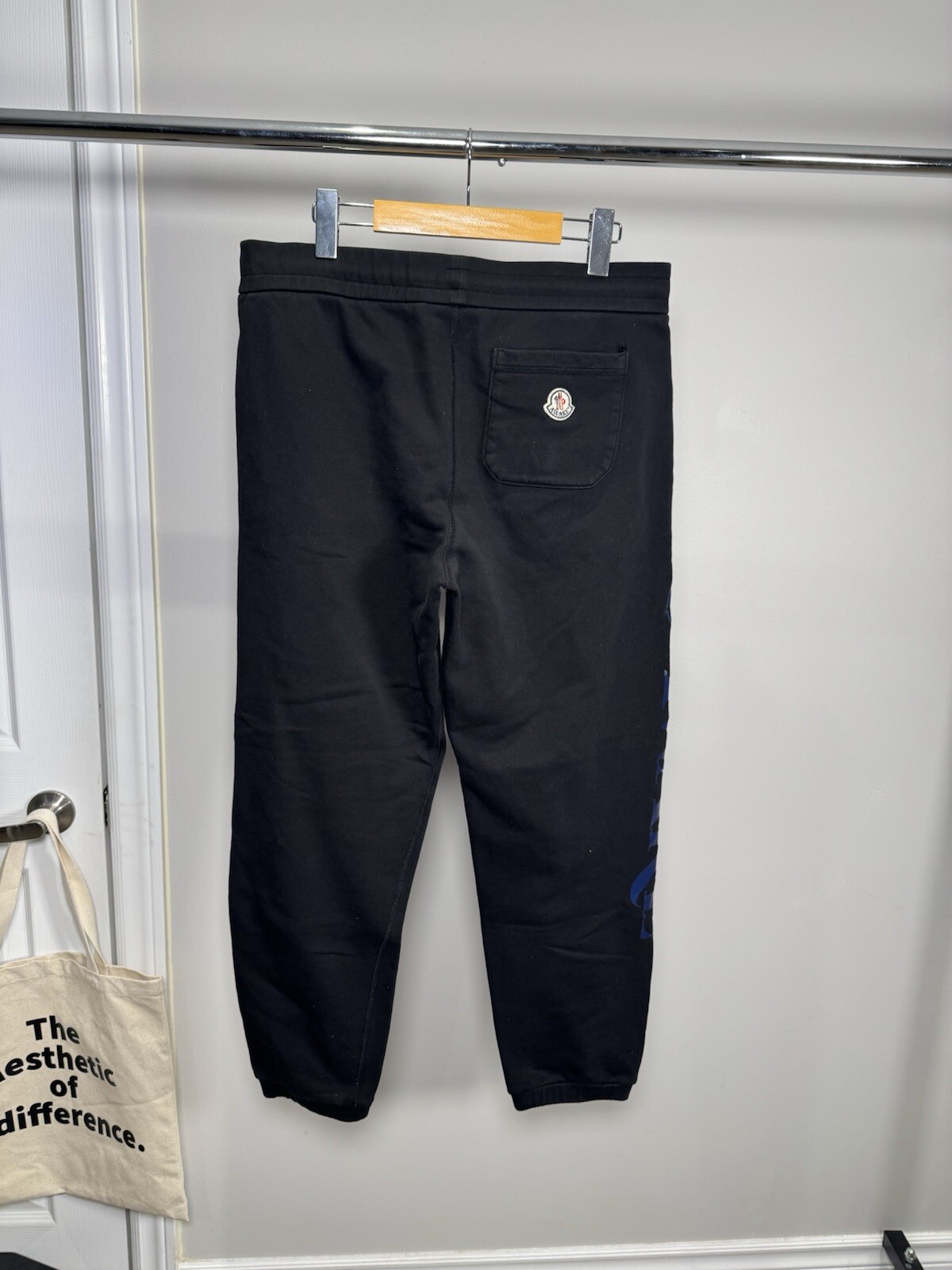 Elevate your loungewear collection with these stylish Moncler Genius sweatpants from the 2 Moncler 1952 Black Awake NY Edition. Featuring a sleek black colour with a bold logo accent, these pants are a perfect blend of comfort and fashion. Made for men in a regular fit size M, with a 27-inch inseam, they are ideal for a relaxed yet trendy look. Perfect for casual outings or staying cozy at home, these Moncler sweatpants are a must-have addition to any modern wardrobe. Small hole on the back pocket shown in photos measurements shown in photos purchased on SSENSE proof of purchase available upon request please contact if you have any questions
