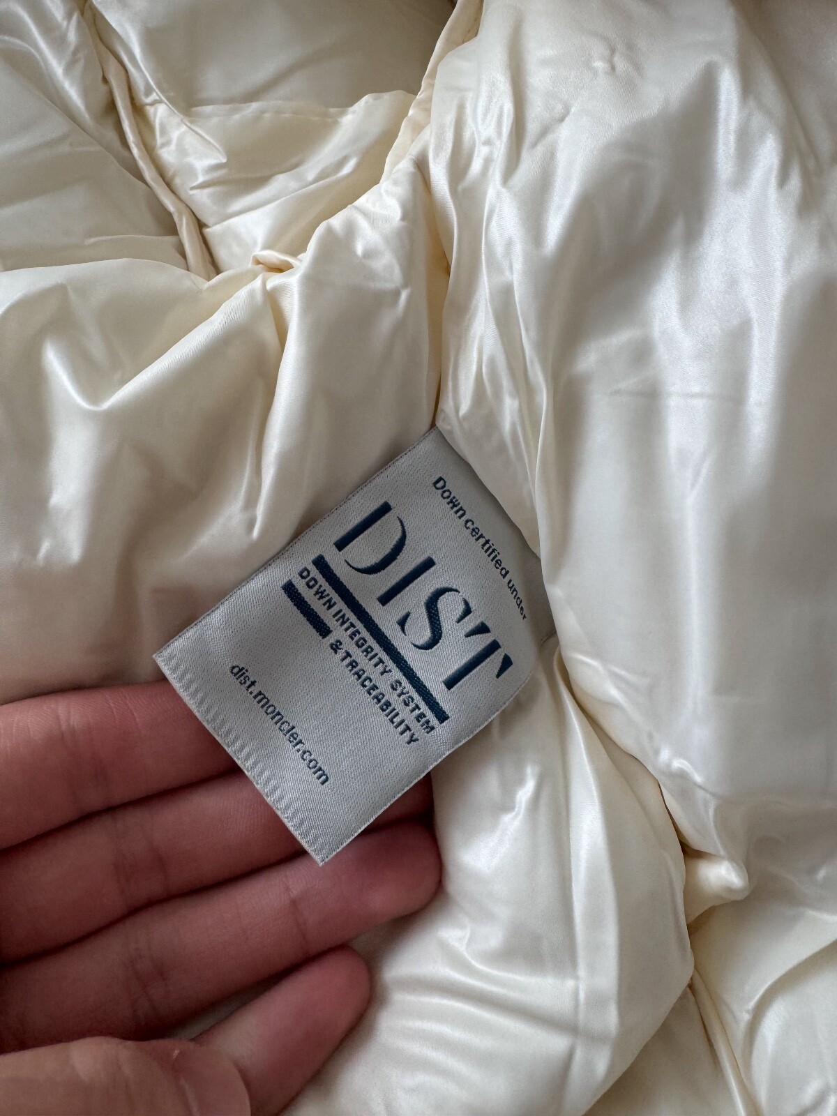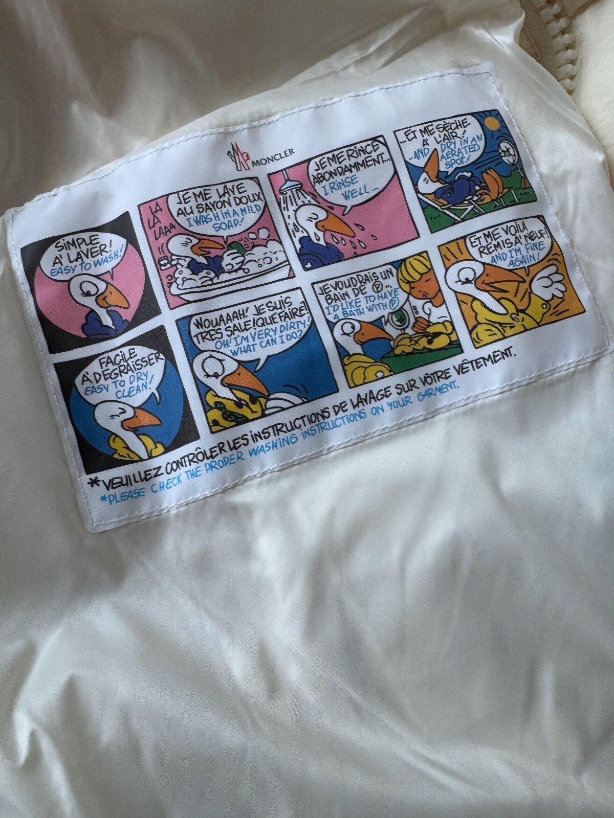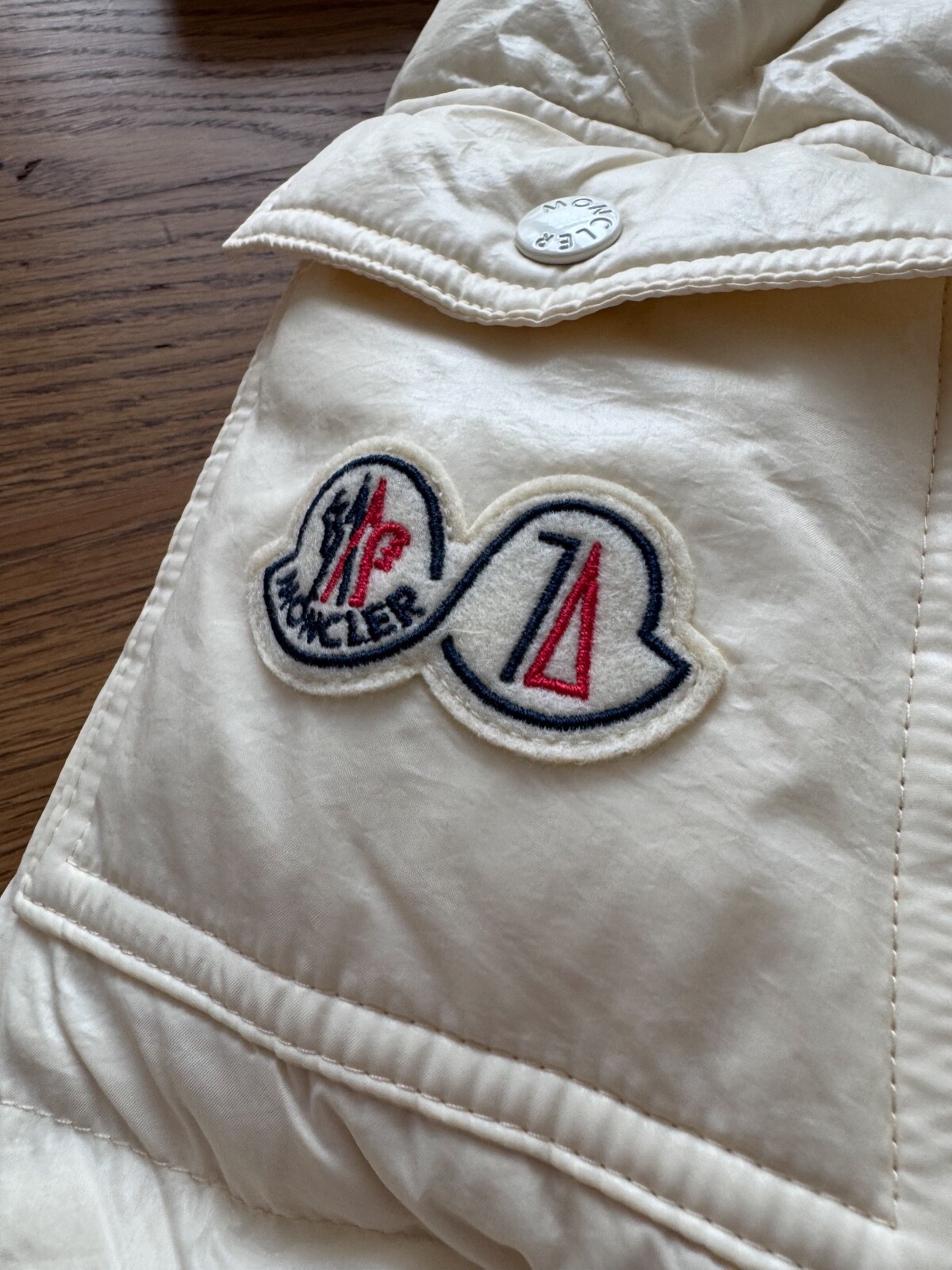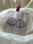 For sale: Moncler Maya 70th Anniversary Special Edition jacket in Snow White. This exclusive piece celebrates Moncler's iconic design legacy with a fresh, modern twist. Crafted with premium materials, it features a glossy nylon laqué finish, signature quilted construction, and the classic Moncler logo patch on the sleeve. This jacket is brand new, in perfect condition, and comes with all original tags and packaging. A rare collector's item, ideal for fashion enthusiasts seeking luxury and timeless style.