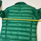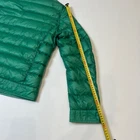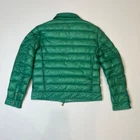 Authentic Moncler men's lightweight down jacket in vibrant green color. Filled with 90% down and 10% feather, providing excellent warmth while remaining lightweight. Features full zip closure, snap-button chest pockets, side pockets, branded hardware and inner adjustable straps. Size 5 (EU 50 / XL). Made in Romania. Flat Measurements: • Shoulder Width: 50 cm • Sleeve Length: 68 cm • Chest (Pit to Pit): 59 cm • Back Length: 66 cm Please refer to photos for full condition details.