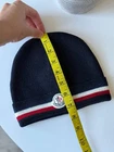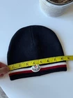 The Moncler Tricolor Stripe Virgin Beanie Wool Hats in dark blue color is a stylish and versatile accessory for men. Made from wool with a knit fabric type, this beanie features a striped pattern and stretch for added comfort and flexibility. Perfect for various occasions such as travel, weddings, parties, and casual outings, this one-size hat from the prestigious brand Moncler is a must-have for the winter, fall, and spring seasons. Made in Italy, this beanie exudes a classic and designer style that is both timeless and fashionable.