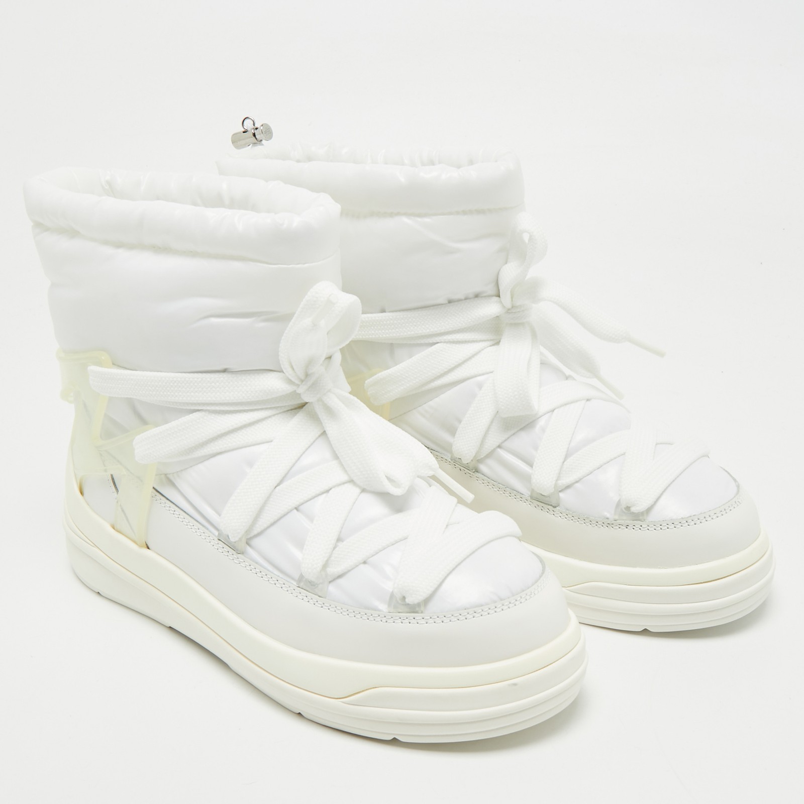 Built for cold weather but styled to move, these authentic Moncler snow boots for women combine durable nylon, leather panels, and an insulated lining. Lightweight, fuss free, and winter ready.Certified by The Luxury Closet - This item has gone through a detailed authentication process overseen by our experts. We offer a lifetime guarantee of authenticity on all our items. Import duties, taxes and charges are not included in the item price. These charges are the buyers responsibility. Please check with your country’s customs office to determine what these additional cost will be prior to buying. Our eBay Store About Us Contact Us Add to Favorite Sellers Moncler White Nylon and Leather Insolux Snow Boots Size 38 $599.5 Built for cold weather but styled to move, these authentic Moncler snow boots for women combine durable nylon, leather panels, and an insulated lining. Lightweight, fuss free, and winter ready. Product Details Brand Color White Dimensions Material Leather, Nylon, Rubber Size 38 Outsole Width Outsole Length Heel Height Includes Certified by The Luxury Closet This item has gone through a detailed authentication process overseen by our experts. We offer a lifetime guarantee of authenticity on all our items. How We Check The in-house team of experts at The Luxury Closet is highly trained to verify the authenticity and the condition of the luxury products. They ensure that only 100% authentic items are put on sale.The evaluation process is unique with its own mix of assessment criteria and differs according to the category. Each item is evaluated based on the following combination of hallmarks, hardware, stitching, symmetry, material, craftsmanship, stamping, codes, hologram stickers, and packaging. Our authenticators also check if the items have been modified or amended (e.g., aftermarket diamonds, replaced batteries, repaired bags, etc.) International Buyers Import duties, taxes and charges are not included in the item price. These charges are the buyers responsibility. Please check with your country’s customs office to determine what these additional cost will be prior to buying.