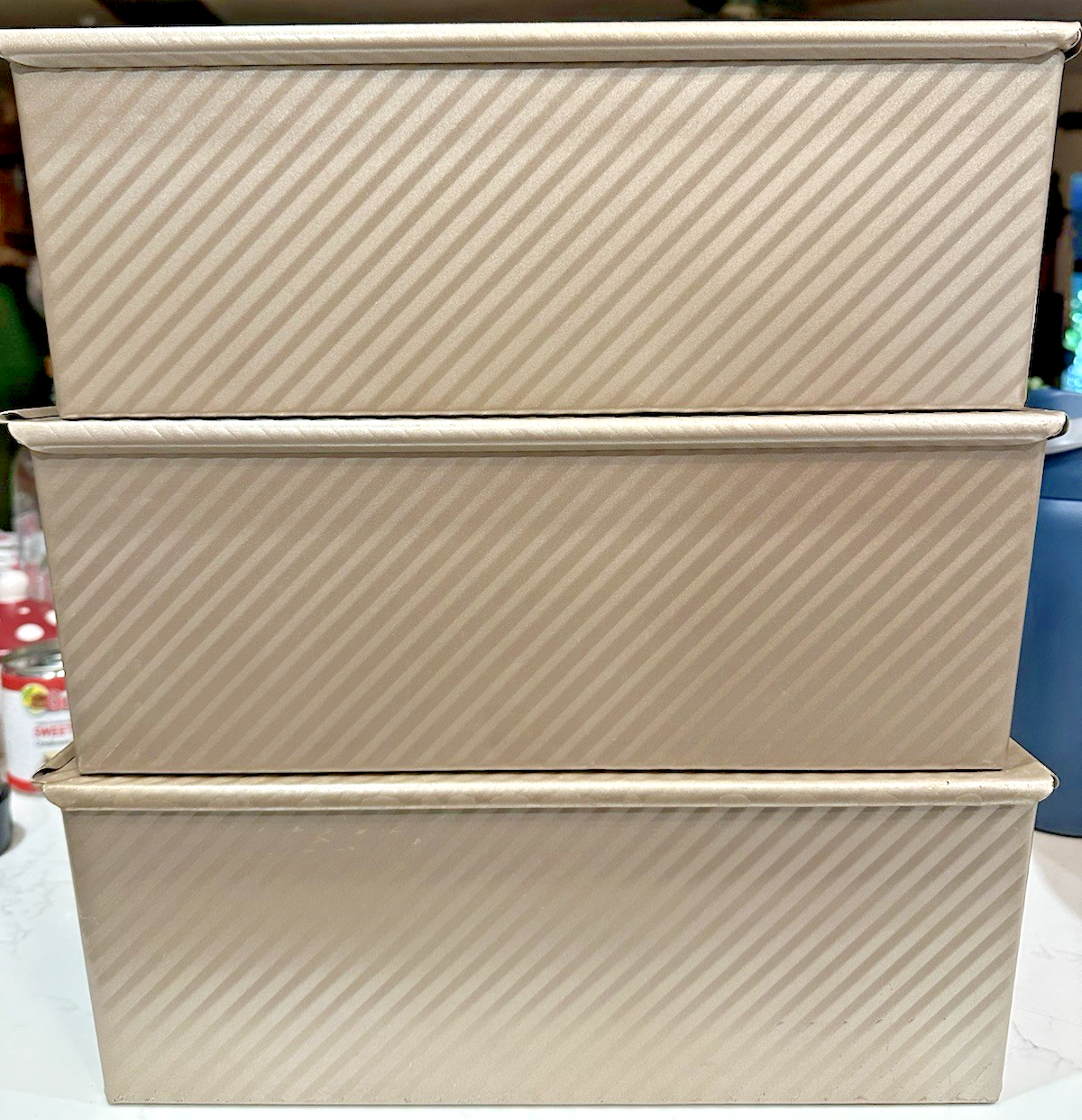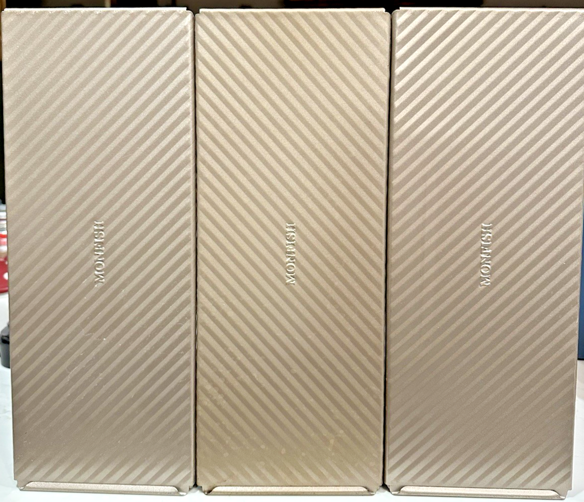 Here’s your listing updated to reflect one pan with lid (not a lot), keeping your tone and structure clean for eBay. This listing is for one (1) Monfish Large Pullman Loaf Pan with Sliding Lid , ideal for baking classic square sandwich bread. The pan has an approximate 2.2 lb dough capacity and features a champagne-colored coating. This pan is used and may show minor cosmetic wear such as light scratches or baking marks from normal use. The pan is fully functional, clean, and ready to use. The sliding lid fits and operates as intended. This pan is well suited for home bakers, sourdough enthusiasts, or anyone looking for consistent loaf results. What’s Included 1 × Monfish Large Pullman Loaf Pan 1 × Matching Sliding Lid Key Features Brand: Monfish Type: Pullman / Sandwich Loaf Pan Dough capacity: Approx. 2.2 lb Finish: Champagne Produces uniform, square loaves Sliding lid design for even baking and shape control Condition Notes Used with minor cosmetic wear from normal baking use Clean and ready for baking Additional Notes Photos shown are representative of the item you will receive Cosmetic wear may vary slightly due to prior use Sold individually (not a lot)