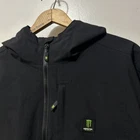 Tagged M, but can fit L / XL. Please see measurements in photos. 25” x 28”. Sold as is. Sold as found. Crafted for versatility and style, the Monster Energy Jacket is a quintessential addition to any wardrobe. This men's size M windbreaker boasts a durable polyester outer shell and a breathable lining for comfort in all seasons. Its hooded design with a full zip closure ensures practicality, while the classic fit offers a relaxed feel. Accented with the iconic Monster Energy logo and vintage touches, this jacket is perfect for outdoor activities like hiking and running or casual wear. It features a range of pockets for essentials and utilizes hook & loop, drawstring, and button closures for easy adjustment. The jacket is machine washable, making maintenance a breeze.