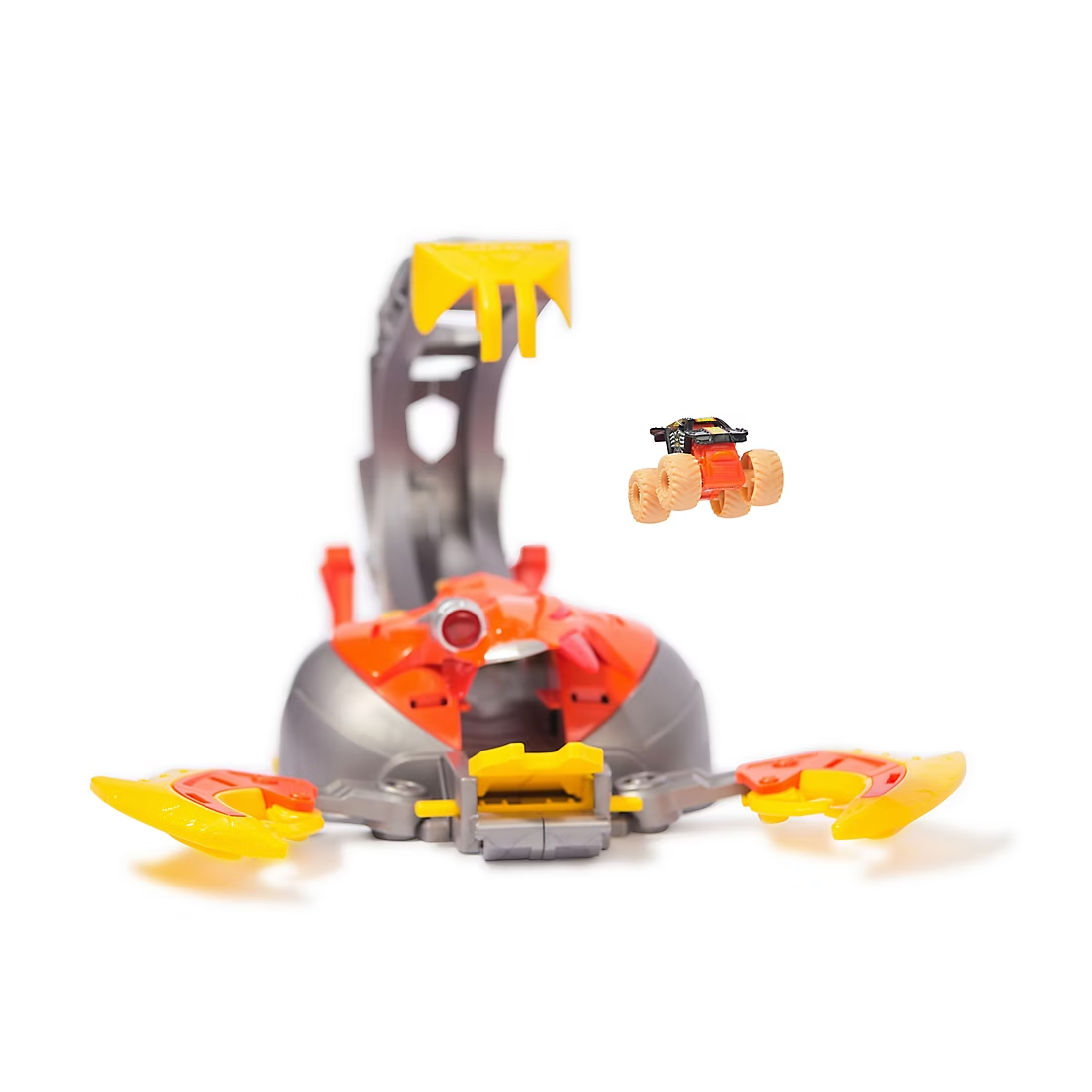 Step into the Monster Jam arena with the El Toro Loco Venom Velocity Scorpion Playset, where action-packed adventures await. This mini playset brings the larger-than-life Monster Jam excitement into your home with an exclusive duo of die-cast trucks in 1:87 scale. Kids can harness the raw power of El Toro Loco and Max-D with a dynamic two speed-launcher, designed to mimic the adrenaline rush of a Monster Jam rally. The stunts are limitless, with an adjustable ramp that dares young fans to push the bounds of gravity. And with the ability to rapid-fire their favorite trucks, the thrills keep coming. When not in use, use the El Toro Loco Venom Velocity Scorpian Playset as storage for all your Mini Jam trucks. Monster Jam toys like remote-controlled cars, RC cars, vehicles, and trucks are prime gifts for girls and boys, igniting their imagination and delivering endless action. Product Features: Mini Jams Venom Velocity Scorpion playset: The El Toro Loco Venom Velocity Scorpion playset delivers unstoppable, high-velocity thrills, as mini jams trucks blast off with a two-speed launcher Perform epic stunts: Elevate your stunts with an adjustable ramp, engineered for the most extreme front flips, backflips, and aerial leaps, mirroring Monster Jam’s live show excitement Monster Jam storage: When not in use, you can store up to 12 mini Monster Jam Trucks Two exclusive Mini Monster Jam Trucks: collect monster jam El Toro Loco and Max-D truck in 1:87 scale. Each Monster Jam mini truck is packed with awesome details and graphics, just like its large-scale version Monster Jam gifts for kids: Monster Jam monster trucks for boys and girls are for ages 3 years and up. Monster jam toys playsets, toy cars, and RC trucks are at the top of kids’ toys and games wish lists Age range: 3+ years Includes a Monster Jam Mini Jams El Toro Loco Truck, Monster Jam Mini Jams Max-D Truck, Scorpion power launcher, Scorpion Tail, left back leg, right back leg, four small legs, three fold-up containers, one left pincer, one right pincer, and jump ramp