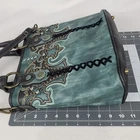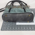 Montana West Select Teal Concealed Carry Bag Purse Tote Western Great preowned condition, 2 marks to back pocket from light wear/use. Please see all pictures. Using priority mail only to protect all embellishments on purse. Made of PU leather (distressed color), this western tote features: Exterior: Cut-out filigree scroll with contrast stitching Antique silver embellishments Double studded detail flat strap Metal studded feet on the bottom for protection and stability Studded detail on every strap/handle connection A zippered pocket (9" x 6") on back for concealed carry gun compartment (size 8″x 5″) An open slip pocket on back Top zipper closure Interior: Inside main compartment is divided by a medium zippered pocket Inside includes a zippered pocket and 2 slip pockets Width:11.5″ x Height: 10″ x Depth: 4.5″(Drop 18" - 22″)