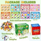 sorting 8 Various Theme Matching Games - Our sorting toys combines 8 learning themes into one playful set, including ocean animals, dinosaurs, farm animals, fast food, construction trucks, balls, magnetic numbers and shapes. Sparking curiosity across science, math, and daily life concepts for holistic early learning. Also 8 erasable coloring pens and a mystery box are provided for multi functions Educational & Learning Toys - The double-sided flash cards are different from others and offer two play modes. Not only matching but also coloring, enhancing hand-eye coordination, fine motor skills, language skills, and problem-solving abilities. Great speech therapy toy for autism, ideal for family game nights, preschool classroom activities Treasure in Mystery Box - Surprise magic box is designed with a hole for easy grabbing. Every piece is a tiny treasure, enhancing dexterity and concentration while igniting constant curiosity. Let your kids start their adventure now Safe & Durable - Made of high quality materials, durable and safe for toddlers kids. The edges are smooth and won't hurt the children's skin. The cards and mininatures with suitable sizes are easy for kids to grasp and play with. Also kids could store all the items in the mystery box after playing or during travelling Perfect Gifts for Toddlers - Watch little faces light up as they unlock new abilities. Our toddler toys are suitable for boys and girls 3 4 5 6 years as Easter basket stuffers or preschool classroom activities. Ideal birthday, holiday, Easter, Halloween, and Christmas gifts. We prioritize kids' safety and happiness, and our toys are up to toy standards. If you have any questions about these STEM toys, please feel free to find us