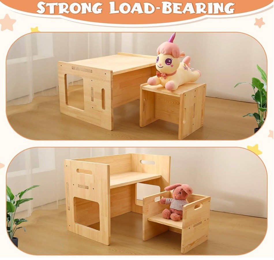 With Beautiful Pattern:YesMaterial:PlywoodNumber of Items in Set:3Table:15 x 11.8 x 14.2 in / 380 x 300 x 362 mmSet Includes:Chair, TableItem Weight:11.4 lbs / 5.15 kgDepartment:Unisex Baby & ToddlerChair:12 x 8.2 x 10.4 in / 302 x 280 x 265 mmStyle:One Table One ChairModel:SYD03Color:Natural WoodMPN:ETDNZY1513216DOMUBrand:UnbrandedAdjustable:Chair with upright and reversed height