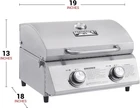 EXPERT GRILLING LID - When grilling large pieces of meat like a thicker steaks, ribs, our high lid could help to cook like an oven. GREAT COOKING AREA - 207 sq.in of total cooking area offers plenty of grilling space for camping or outdoor cooking. 15,000 BTUS COOKING POWER -Two main burners with total 15,000 BTUs deliver fast and even heat and great grilling experience STAINLESS STEEL GRATES & BURNERS - Stainless Steel cooking grates and 2 burners are designed for fast and even cooking, the dimension of the cooking grate is 15.43x12.91 inches BUILT IN THEROMETER - Built-in center mounted thermometer monitors temperature inside the grill. Propane tank is not included with the grill On Oct 10, 2024 at 02:13:39 PDT, seller added the following information: On Nov 21, 2024 at 23:27:38 PST, seller added the following information: