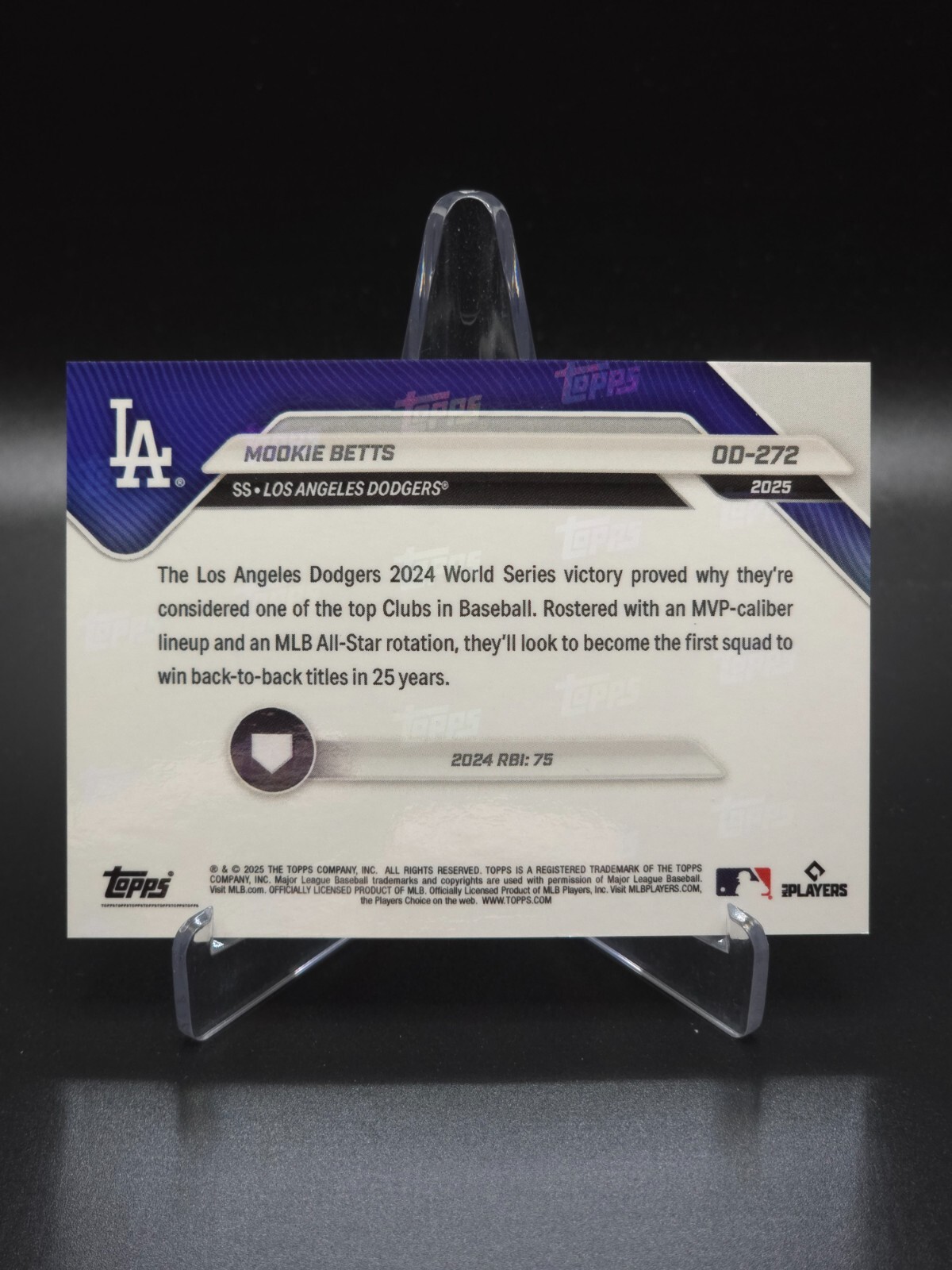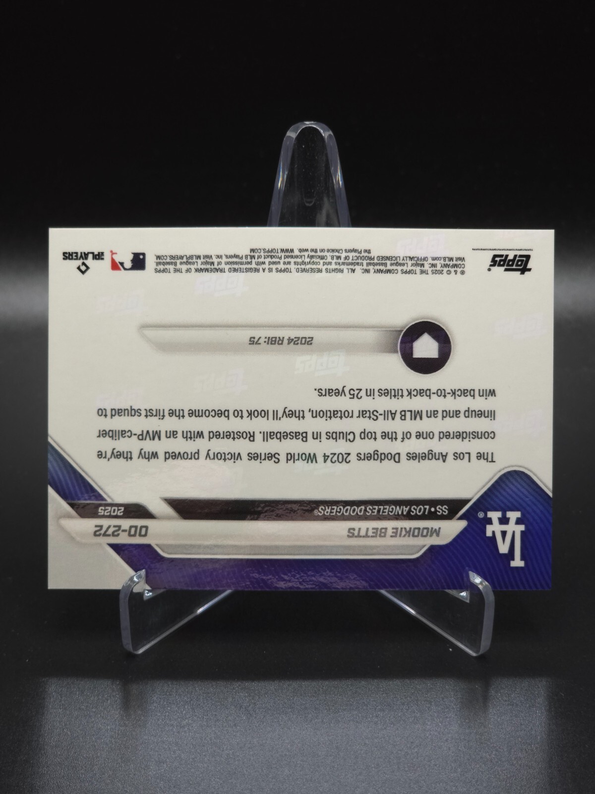 Mookie Betts 2025 Topps Now Road To Opening Day SP L.A. Dodgers Aqua #150/199 NOTE: Stand shown in photos not included. Payment: Payment for all purchases is due within 72 hours. For International Buyers: I do not charge duty/taxes/customs fees because I have not control over whether or not your respective country will charge such a fee. As a result, I will not reimburse for assessed duty/taxes/customs fees if charged. Combined Shipping: I do offer combined shipping. In most cases, it will be $0.50/card after the initial main card shipping purchase. If the combined shipping was not available in the shopping cart, I will gladly provide a refund upon shipping preparation. If you placed an order for additional cards before first order shipped, I will add additional cards with combined shipping. What Shipping Pays For: - If Raw Card: Penny Sleeve, Top Loader, Team Bag, Cardboard Shipping Protectors, Painter's Tape, and Bubble Mailer with Shipping Tracking in most cases. - Ask about a cheaper shipping option! - If Graded Card: Team Bag, Cardboard Shipping Protectors, Painter's Tape, and Bubble Mailer with Shipping Tracking in most cases. Shipping Restrictions: Due to incoming shipping restrictions, global shipping will not mail to the following countries: Barbados, French Guiana, French Polynesia, Guadeloupe, Libya, Martinique, New Caledonia, Reunion, Russian Federation, Ukraine, Venezuela.