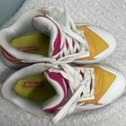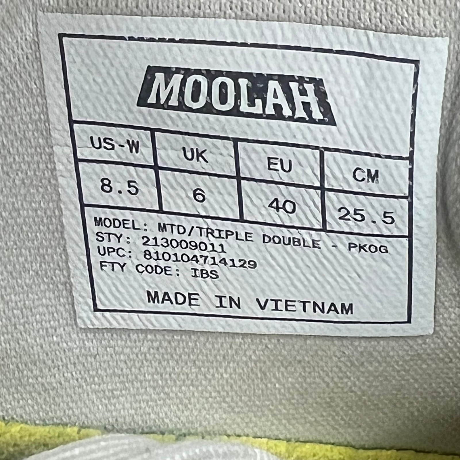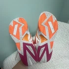 Moolah Kicks Women's Triple Double Basketball Shoes, 'Straight to the Baja' colorway (Pink/Orange), Size 8.5. Designed specifically for the biomechanics of female athletes, these high-performance hoops shoes feature a striking sunset-inspired gradient upper. Key Details: - Model: Triple Double - Colorway: Straight to the Baja (Pink/Orange/Yellow/White) - Silhouette: Mid-top for ankle support - Sole: Multi-directional traction pattern for quick cuts on the court Condition: Great pre-owned condition. Very light signs of wear on the outsoles and midsoles as pictured. No major structural flaws or heavy staining. Insoles are clean.
