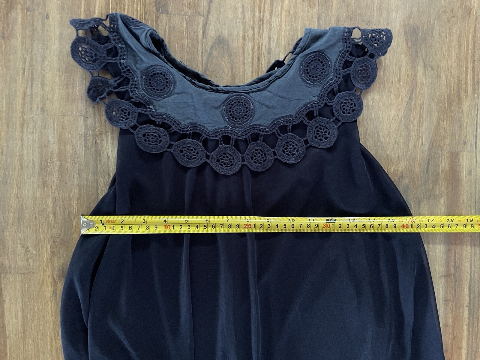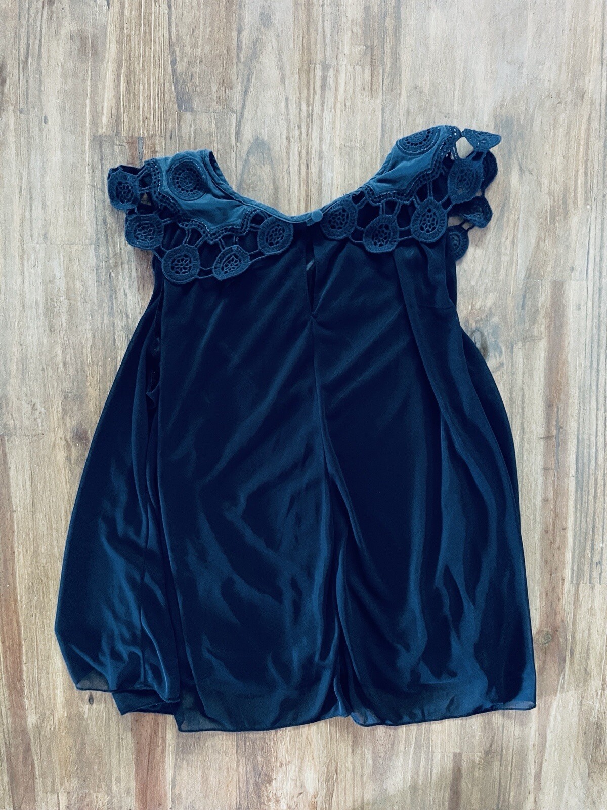 Absolutely love this tank! The sheer navy blue is stylish and versatile—perfect for layering or wearing solo. Lightweight, comfy, and fits true to size. Great quality for a preowned piece—no flaws at all. A must-have for casual summer outfits!