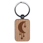 Moon with Hanging Stars Engraved Wood Rectangle Keychain Tag Charm
