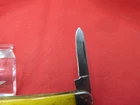 The Moore Maker Matador Texas USA 5300B is a classic pocketknife with a slipjoint lock mechanism. It features a clip point blade type and a striking yellow bone handle, giving it a traditional and collectible look. This stockman style knife has three blades, making it versatile for various cutting tasks. As a modern folding knife, it embodies quality craftsmanship and functionality, ideal for both everyday use and knife collectors. MULTIPLY LISTING MAY VARY SLIGHTLY....CARBON STEEL BLADES MAY HAVE SPOTS.. WE KNOW YOU HAVE A CHOICE WHERE YOU SHOP… THANKS FOR SHOPPING WITH US AT NO PRESSURE SALES,LLC PLEASE BE SURE AND VISIT OUR OTHER ITEMS Thanks for looking YOU WILL RECEIVE THE ITEM PICTURED UNLESS IT IS A MULTIPLE LISTING OR OTHERWISE STATED.ALL BONE KNIVES COME FROM BOVINE (COW) BONE UNLESS OTHERWISE STATED !!
