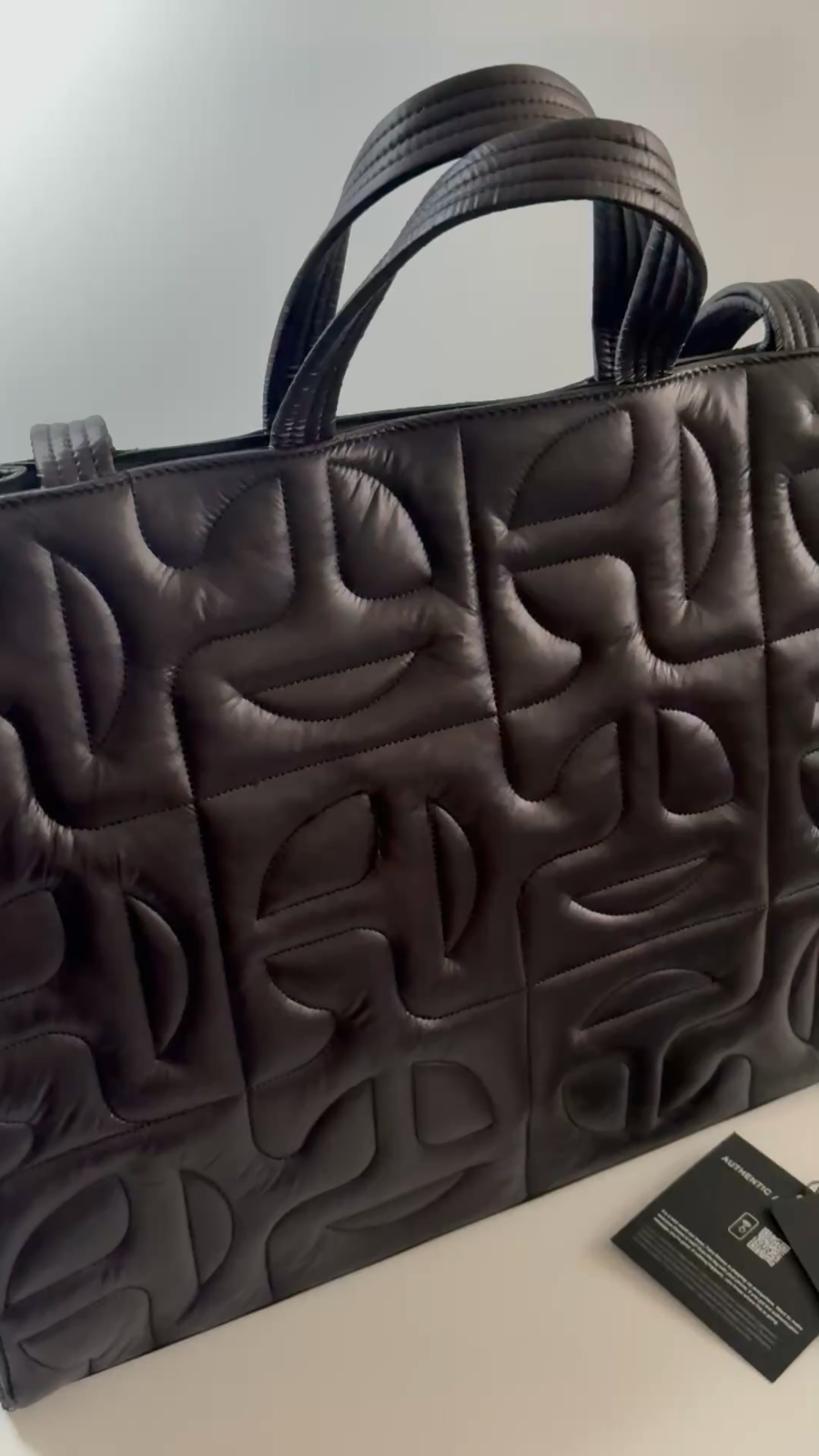 This iconic Moose Knuckles x Telfar Quilted Large Tote is a standout piece from their coveted collaboration. Crafted in sleek black nylon with Telfar’s signature monogram quilted pattern, it’s engineered for both style and function. The large size is perfect for weekend getaways, work essentials, or everyday luxury. • 🖤 Color: Black • 🧵 Material: Quilted nylon with monogram motif • 👜 Size: Large (fits carry-on or weekend essentials) • 🧲 Closure: Magnetic snap • 🎒 Straps: Dual strap system – top handles + long shoulder strap • 🧼 Condition: Excellent – gently used with minimal signs of wear • 🎁 Includes original dust bag Measurements (approx.): • Width: 19.25 in / 49 cm • Height: 14.75 in / 37.5 cm • Depth: 7 in / 17.8 cm • Handle drop: 5.5 in / 14 cm • Strap drop: 21 in / 53 cm Bag is like new condition with tickets and dust bag included ✨ Shipping the Same Day 📦 Shipped with care 🔄 30-Day Free Returns (under not as described 💖 Thank you for shopping at Karo’s