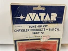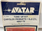 The product is an AVATAR tune-up kit designed for Chrysler vehicles manufactured between 1962 and 1972 with 6-8 cylinder engines. Specifically, it includes a distributor rotor for the ignition system. This vintage car parts kit is new old stock (NOS) and can be used to maintain and enhance the performance of classic Chrysler vehicles within 1962 to 1972 The brand Avatar is known for producing quality automotive parts, making this kit a reliable choice for those looking to restore or maintain their vintage Chrysler vehicles.