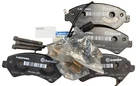 This is a Mopar OEM Brake Pad Set with part number 68269695AB designed for the front of a vehicle. It includes 4 brake pads and mounting hardware for quiet operation. The set is made in Germany and comes with a manufacturer warranty. Please note that one bolt is missing.