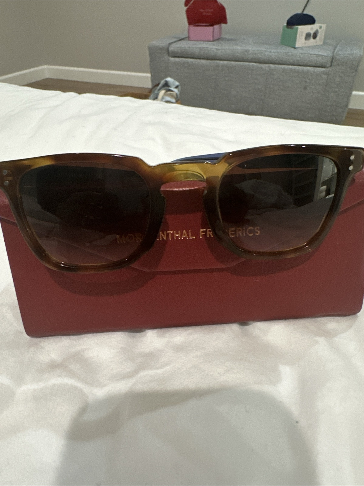 The Morgenthal Frederics Classic Authors Series features sleek frames with styling as classic as their namesake icons. This timeless square sunglass features a thicker profile for a bolder look. It has a keyhole bridge and comes in a sophisticated color palette of handcrafted acetate with gradient lenses that accentuate its distinctive design. Made in Japan. Material: Acetate Shape: Square Lens Profile: Classic Width: Medium A: 49 DBL: 25 Temple: 140