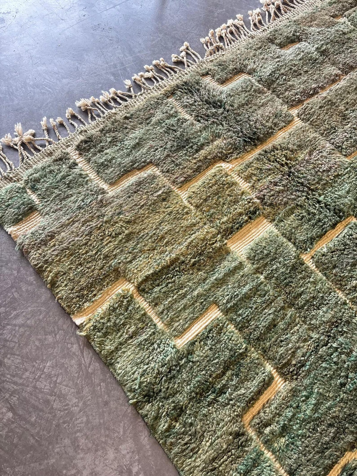 We are delighted with this beautiful rug, it is gorgeous, such great quality. The colour is true to the photo and is a lovely kind of moss green. It was very interesting tracking its journey all the way from Uttar Pradesh, which we didn't realise is known as rug town or city. I was worried about the packaging not holding up, but it was triple wrapped and sent via Fed Ex and arrived in perfect condition, other than a couple of rumples, which is to be expected. Well done and thank you!