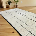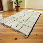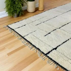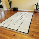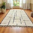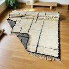 Design Moroccan Berber Wool Rug Color Ivory Black Handmade Carpet Rug