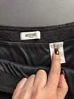 Chic and timeless, this Moschino Jeans Donna black wool mini skirt adds a touch of edge to classic sophistication. Crafted in Italy, this fully lined skirt features a soft wool-blend fabric with structured tailoring and shiny black stud embellishments along both the front and back hemline. Details: • Brand: Moschino Jeans Donna • Color: Black • Material: Wool blend (see care tag for exact composition) • Fully lined interior for comfort and quality • Side zipper closure for a sleek fit • Decorative black stud details at front and back hem • Size: 10 USA / 46 ITA • Made in Italy Condition: Gently pre-owned and in excellent condition with minimal signs of wear. Style Tip: Pair it with a fitted top or tucked-in blouse and ankle boots for a polished, modern look.