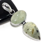 Moss Prehnite 925 Silver Plated Long Pendant 2" Fashionable Jewelry JW