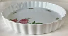 Moss Rose 10-inch round quiche baking dish. Very pretty, surrounded by pink roses inside. Fluted edges. No chips. Vintage.