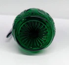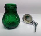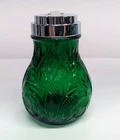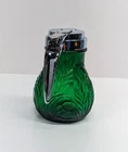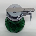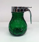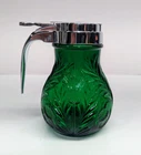 Mosser Glass Emerald Green Syrup Dispenser Pattern: Inverted Thistle Made in USA Approx 4.5" tall New old stock in excellent new condition. No chips or cracks. The Lid was made in China and is made of metal with a chrome finish. Please take a look at the pictures as they are part of the description and let me know if you have any questions before purchasing. I have a collection of Mosser Glass that is "New Old Stock" from a dealer acquisition. I will be listing more Mosser Glass pieces every week for the rest of the year.