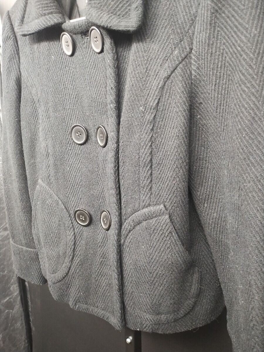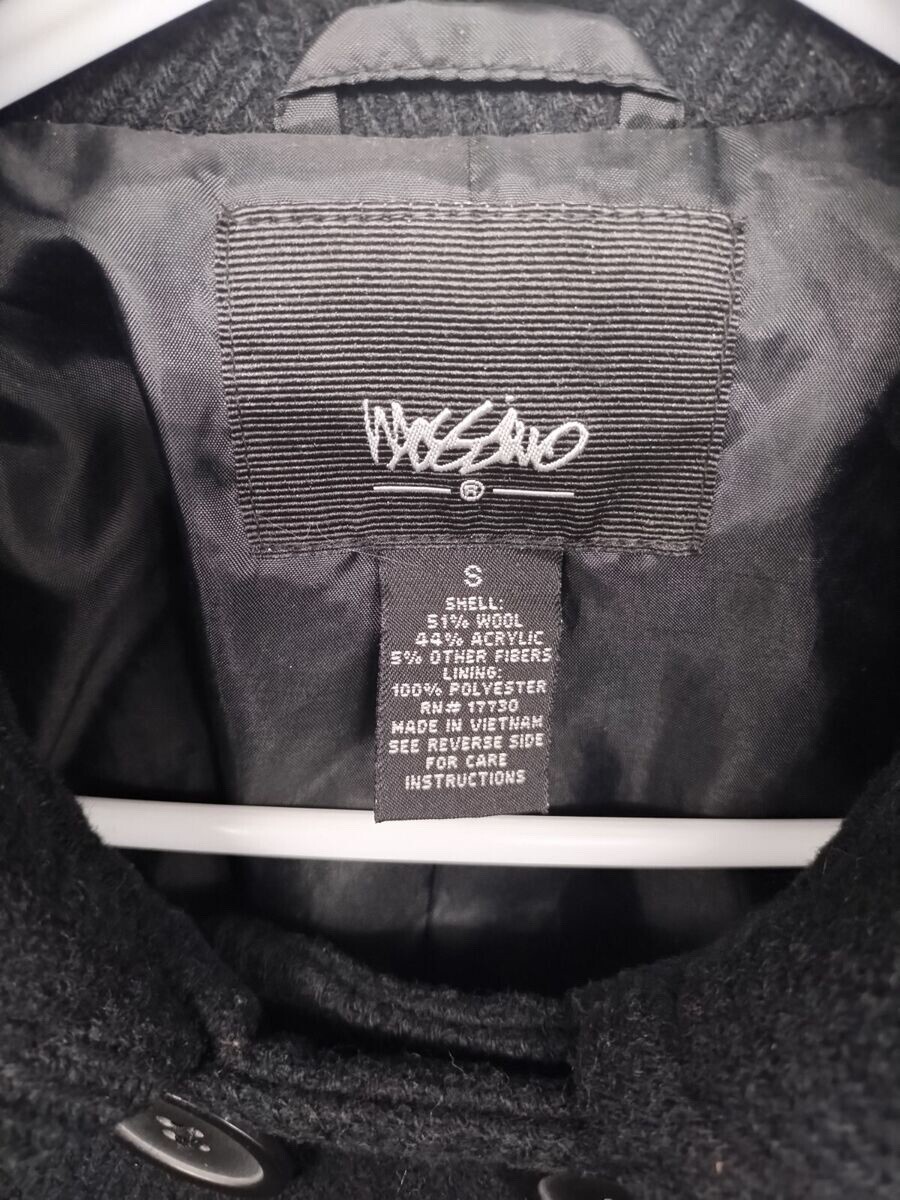 Stay stylish and cozy with this Mossimo peacoat jacket, perfect for cool weather. Made with a soft wool blend in a classic herringbone pattern, this jacket is a versatile addition to your wardrobe. It features a double-breasted design with black buttons, a tailored fit, and a fully lined interior for extra warmth. The jacket also includes two front pockets and a wide collar for a timeless, elegant look. Key Features: Brand: Mossimo Size: Small Color: Black Material: Shell - 51% Wool, 41% Acrylic, 6% Other Fibers; Lining - 100% Polyester Style: Peacoat / Jacket Pattern: Herringbone Closure: Double-breasted button-down Pockets: 2 front pockets Made in: Vietnam This jacket is pre-owned and in good condition with minimal signs of wear. See photos for details. Inv #3001