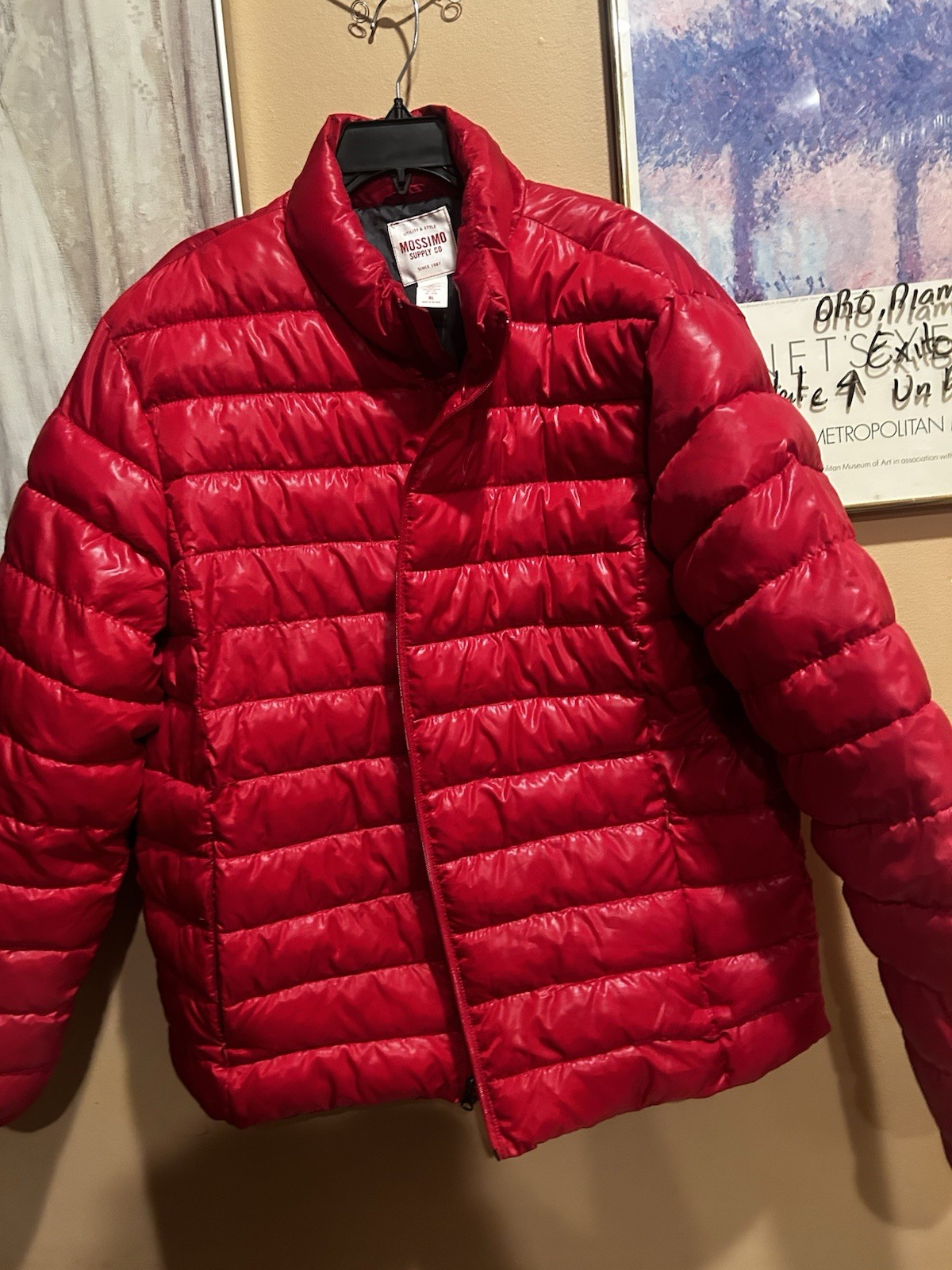 The Mossino Red jacket is a casual outerwear piece made from polyester with a vintage 90s theme. This lined jacket is perfect for fall, winter, and spring seasons, featuring a basic jacket style that is machine washable for easy care. With a vibrant red color and size L, it is suitable for both men and women looking for a stylish and comfortable winter garment from the trusted Mossimo brand.