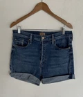 These Mother Jean shorts are a must-have for any fashion-forward woman. The distressed denim and stretchy cotton blend fabric make for a comfortable and stylish fit, perfect for casual or travel occasions. The 5-pocket design with a zip closure and flat front provides both functionality and a trendy look. These shorts are machine washable and come in a beautiful shade of blue, making them a versatile addition to any wardrobe. Ideal for summer, fall, and spring, these shorts are available in women's size 32 and are sure to become a favorite in your collection. PLEASE NOTE: These are jeans that have been customized into shorts. Great condition. Some small spotting on front right side as shown in photos.