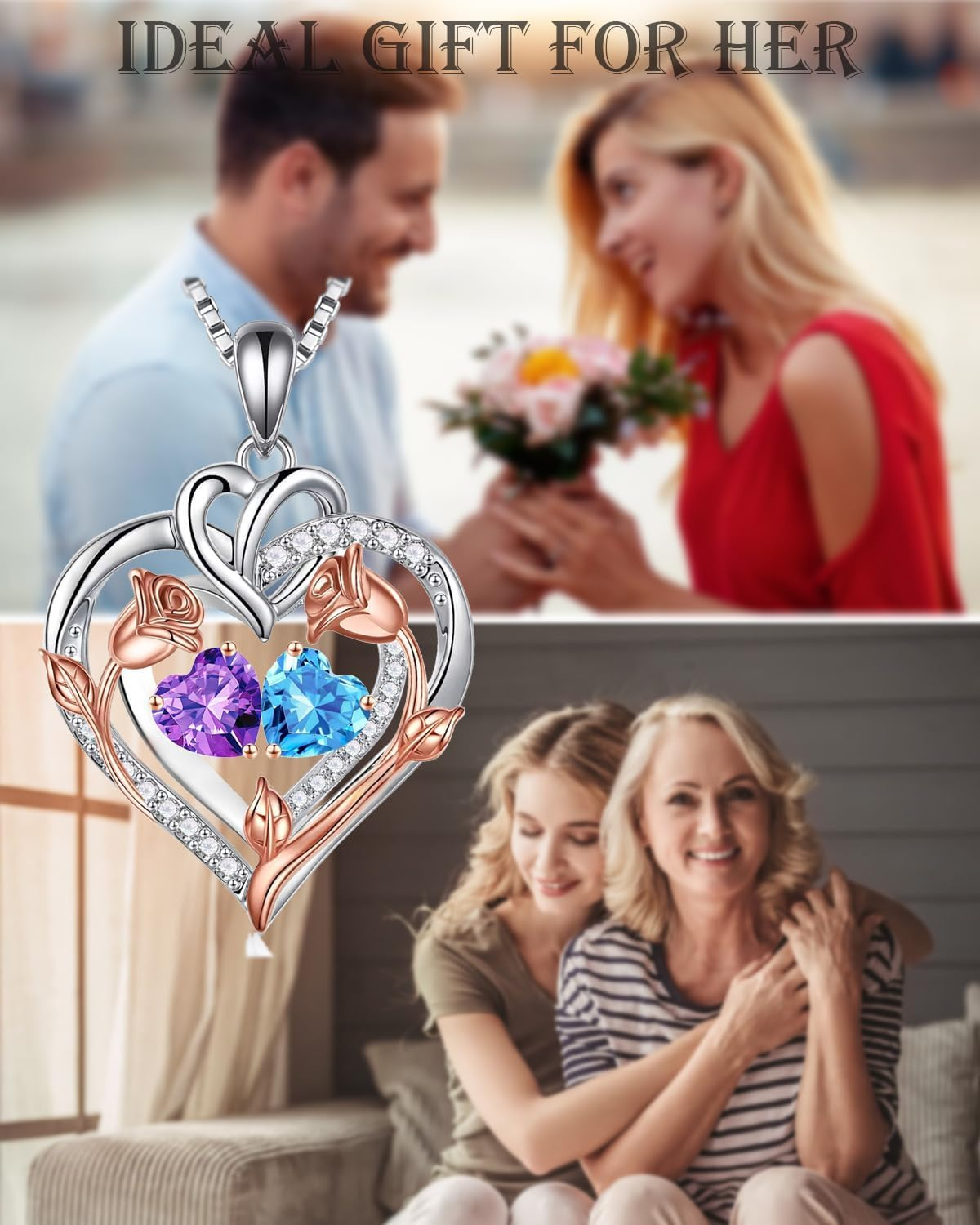 Mom Gifts Mom Birthstone Necklaces, 925 Sterling Silver Heart Pendant Birthstone