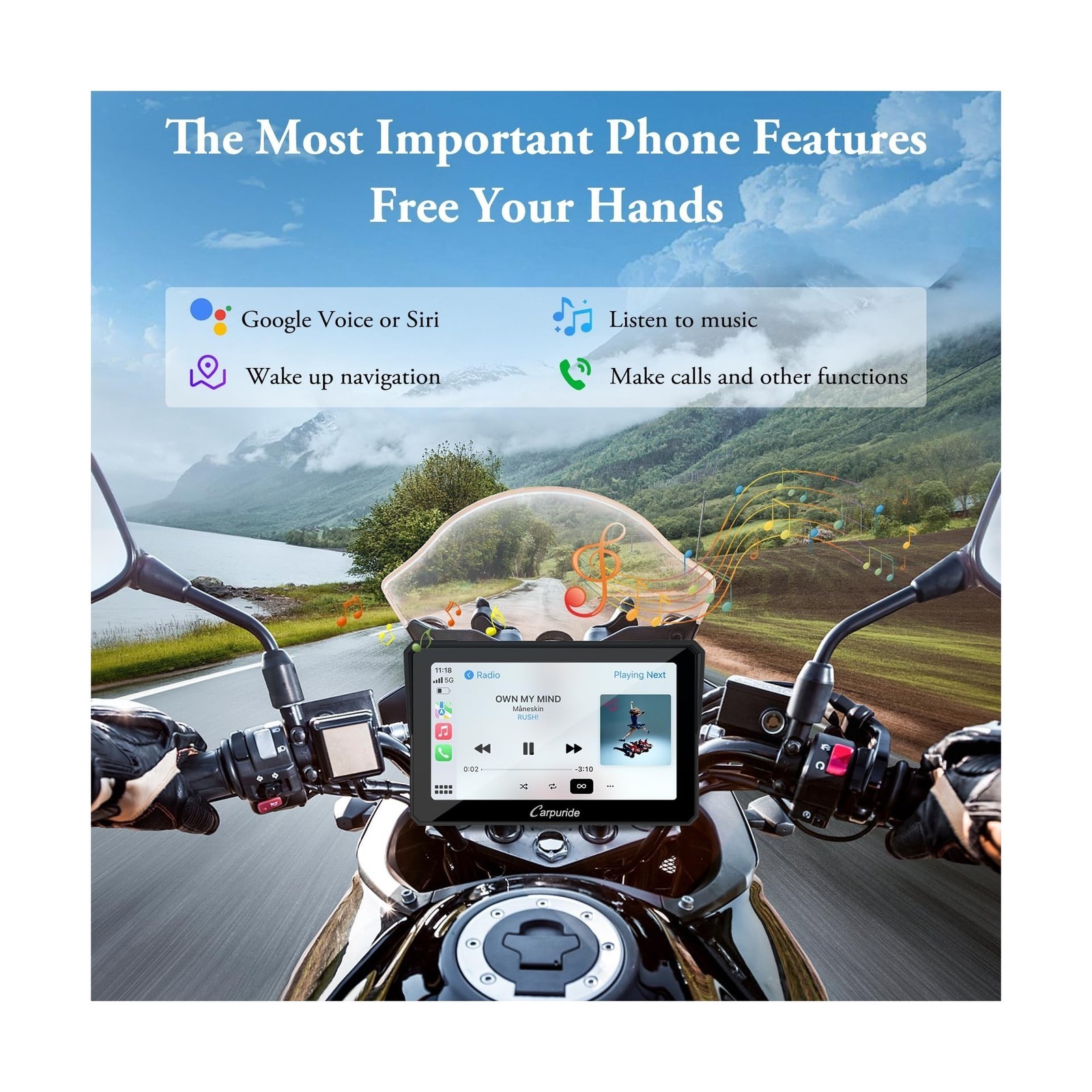 Carpuride W702 for Motorcycle, 7 inch Waterproof Touchscreen, Portable Carplay/Android Auto GPS Navigation for Motorbike, Support Dual Bluetooth, Car GPS, Siri, G00gle Assistant, TF-64G Description Features: Wireless CarPlay and Android Auto for Motorcycles: Our carpuride W702 motorcycle carpaly has CarPlay or Android Auto functionality. By wirelessly connecting your smartphone to your motorcycle's touchscreen via Bluetooth, you can access map navigation, phone calls, music playback, text messaging, and more with the help of Siri or G00gle Assistant. Keeping your hands free allows you to focus on the road and ride safely. Compatible with OS 6+, Android 11+ Built-in Dual Bluetooth: Carpuride W702 Motorcycle GPS carplay features built-in Dual Bluetooth connectivity, pair the carplay touch screen with your smartphone and Bluetooth-enabled headphones or helmet, you can make hands-free calls or enjoy your favorite music, without take off your helmet. The convenience of dual Bluetooth seamless connection not only keeps your phone safely in your pocket but also allows you to enjoy a free riding experience. 7" HD IPS Touch Screen: The carplay screen for motorcycle is equipped with a 7-inch high-definition IPS touch screen with a resolution of 1024*600, making the visual effect more intuitive and the touch responsive. Vibrant 65K color and up to 1000nit peak brightness ,provide a clear and wonderful viewing experience even under bright outdoor sunlight, and include 64G TF cards. IP67 Waterproof & Anti-Theft Design: IP67 Waterproof and Durable design, even if you ride in the rain or scorching sun, our motorcycle carplay screen can still be used normally, no need to worry about all kinds of weather! The Thief-proof detachable bracket design keeps the motorbike touch screen under control, providing you with higher security and convenience. It works flawlessly in a temperature range of -20C to 70C. Built-in EQ With its built-in preset EQ and user-customized 16-band HD EQ with 12 adjustable frequency sections, you can enjoy a wide variety of music styles and sound effects. when playing music through SD, and Bluetooth Music, click EQ,open or close "Loud" to turn on/off the bass effect, you can also choose the sound effect mode, rock, classical, jazz,and other sound effects. Two Power Connection OptionsUsing the motorcycle power line to provide 12V and 1A to the battery. The motorcycle's USB port provides a current of 5V and 2.5A or higher, use the USB boost cable to directly connect the W702 device to the motorcycle's USB port. The W702 has built-in reverse protection for convenience. Even if the cable is connected incorrectly, the device will not be damaged. Easy Installation, Suitable for All Motorcycles: This portable motorcycle car screen comes with a bracket kit and tools for easy installation. Specially designed bracket kit and screw system with a safe and stable setup makes it easy to securely mount the screen on any motorcycle; (Simple wiring, ACC +12V and ground), NOTE: Not perfectly compatible with Samsung Note as well as S series. Before buy, please make sure your phone supports wireless carplay or wireless android auto. Notice: The accessory 64GTF card does not support software upgrades. It only supports storing music and videos for local playback. If you want to update software, please use a small capacity 32, 16, 8, 4GB card. Notice: Our model 702 does come equipped with a TF card; however, unlike other accessories, the TF card is not placed inside the packaging. Instead, it is pre-installed inside the device and sealed with screws at the factory. You will need to remove these two screws and open the waterproof cover to access the installed TF card. This design is intended to save customers the step of installing the TF card themselves. Notice: When using the motorcycle power line to supply power to the battery, ensure that the output voltage and current are 12V, 1A. If the USB port on the motorcycle outputs voltage and current less than 5V, 2A, it is not recommended to use the Carpuride moto to connect the USB boost line, as insufficient voltage or current may cause the motorcycle carplay screen to automatically shut down. Product Details: Brand: Carpuride Model Name: CARPURIDE W702 Vehicle Service Type: Car, Motorcycle Screen Size: 7 Inches Special Feature: Bluetooth, GPS Navigation, Touchscreen, Waterproof Connectivity Technology: Bluetooth, Wi-Fi Map Type: Worldwide Sport: Motorcycling Included Components: 1x 7 inch Motorcycle carplay screen, 1x Extension Rod;1x U-shaped Support, 1x Power cable;1X64G TF, 1x User manual See more Audio Output Mode: Stereo Product Dimensions: 7.2 x 1.74 x 4.49 inches Item Weight: 1.85 pounds Item model number: 704 Date First Available: October 30, 2023 Manufacturer: Carpuride Delivery We Do Not Ship Outside of the Continental US. Return Policy All items qualify for returns within 30 days of receipt. Seller is responsible for return shipping on any item that is not damaged. Feedback We take our reputation seriously, we buy and sell online, so we understand the value of trust. If you are unsatisfied with your order, please contact us and we will work with you to resolve it to your satisfaction. WELOCME TO BUY PEAK Power Vision Automotive High Performance 9007/HB5 65/55W Headlights (2 P... 16.43 USD 17.48 USD Free shipping 6% off