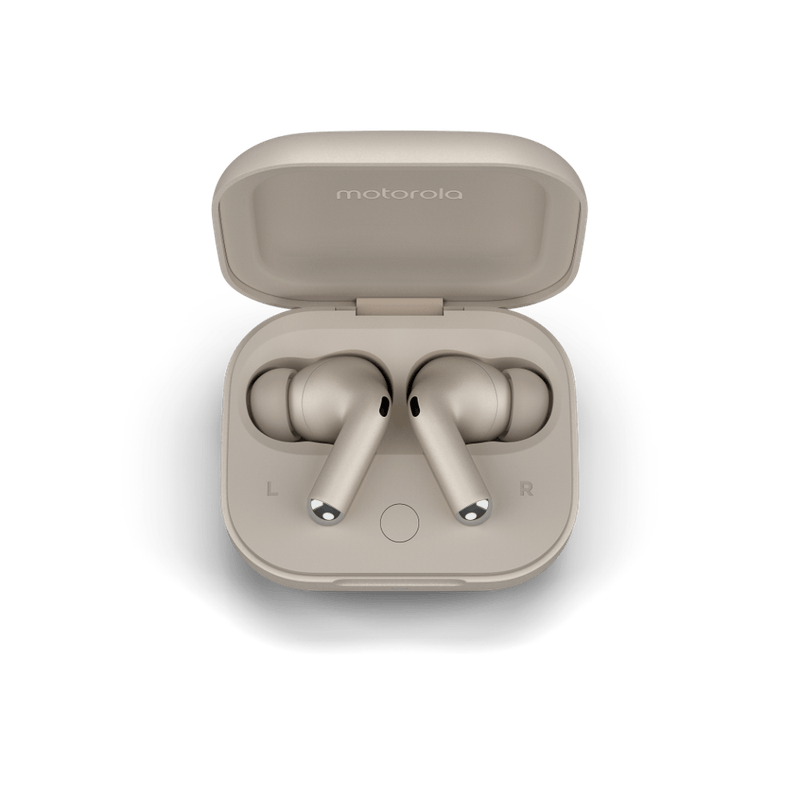 Motorola Moto Buds Plus by Bose Noise Isolation, 38hrs Playtime Water Resistant Brand : Motorola Model : Moto Buds+ Color : Beach Sand, Forest Grey Type : Ear-Buds Product Description DUAL DYNAMIC DRIVER + HI-RES AUDIO; Experience lossless sound with clear vocals and rich bass - professional quality with a larger sound spectrum and triple detail accuracy DOLBY HEAD TRACKING + DOLBY ATMOS; Stay in the middle of the action and immerse yourself in a multidimensional sound world Dynamic active noise reduction; choose your desired level of noise cancellation while protecting yourself from harmful noise Up to 38 hours of playback and wireless charging; listen to music for up to 8 hours, enjoy plenty of battery power with the charging case plus wireless charging Triple microphone system for clear phone calls; thanks to the suppression of ambient noise, echo cancellation, Moto Crystal Talk and wind noise reduction, you are clearly heard at all times