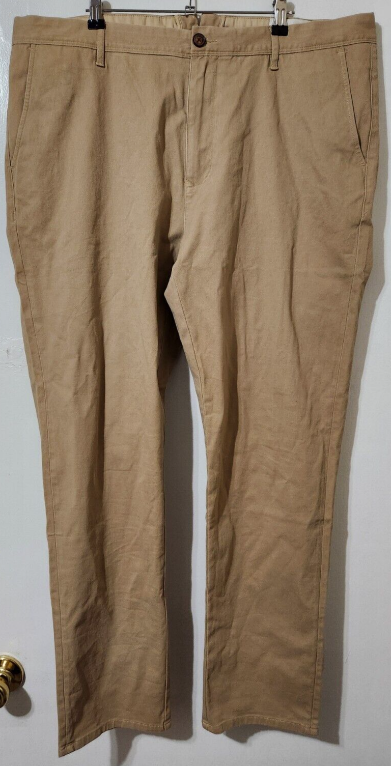 DOCKERS Flat Front Straight Leg Chino Pants Men's 36x34 Tan Slash Pocket